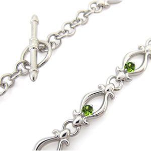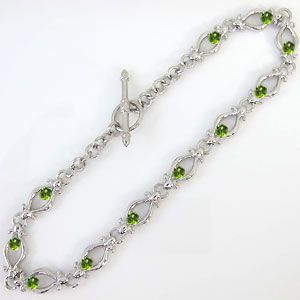 8月誕生石ペリドットと地金を贅沢に使用した、10金製のブレスレットです。