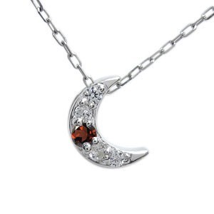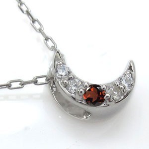 1月誕生石ガーネットを使用した、プラチナ製の三日月(ムーン)をモチーフネックレスペンダントです。