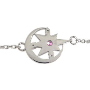 9月誕生石ピンクサファイアを使用した18金製の三日月(ムーン)と星(スター)モチーフブレスレットです。