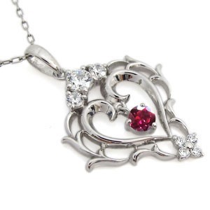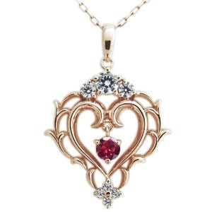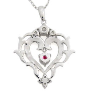 7月誕生石ルビーを使用した18金製の唐草(アラベスク)&ハートモチーフネックレスペンダントです。