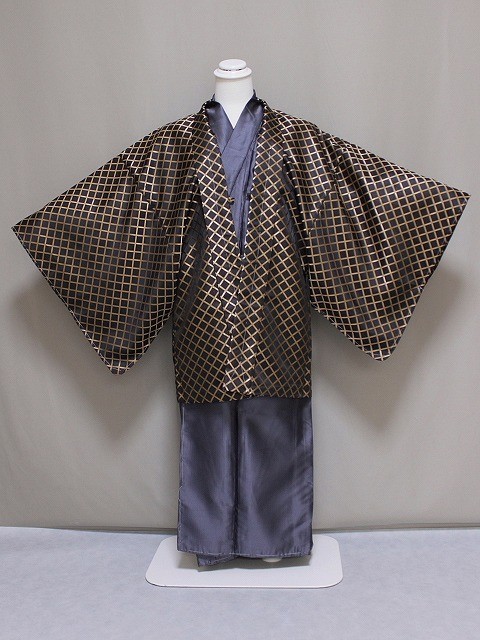 | E7500-03LL 塚羽留 男性用のお着物と羽織がセットになったアンサンブルです。 ポリエステル素材なのでご自宅でお手入れ(取り扱い表示参考)ができ お天気なども気にせず着用ができ お着物に慣れていない方も安心のセットです。 お着物と羽織のみの価格です。帯や小物など 当ショップにも多数ございますのでお寄り下さいませ。 ジュニアサイズもございますので ペアでご一緒に着用されてはいかがでしょうか。 着物柄は、濃いグレー系色に細かな縞柄となっています。羽織は黒地にゴールドの格子柄です。★ | ||||||||||||||||||||