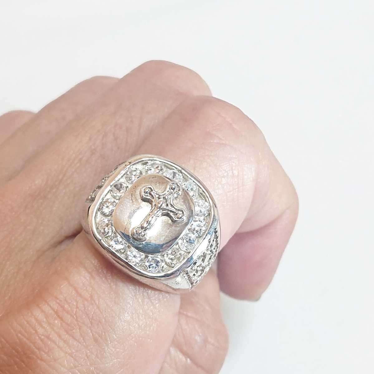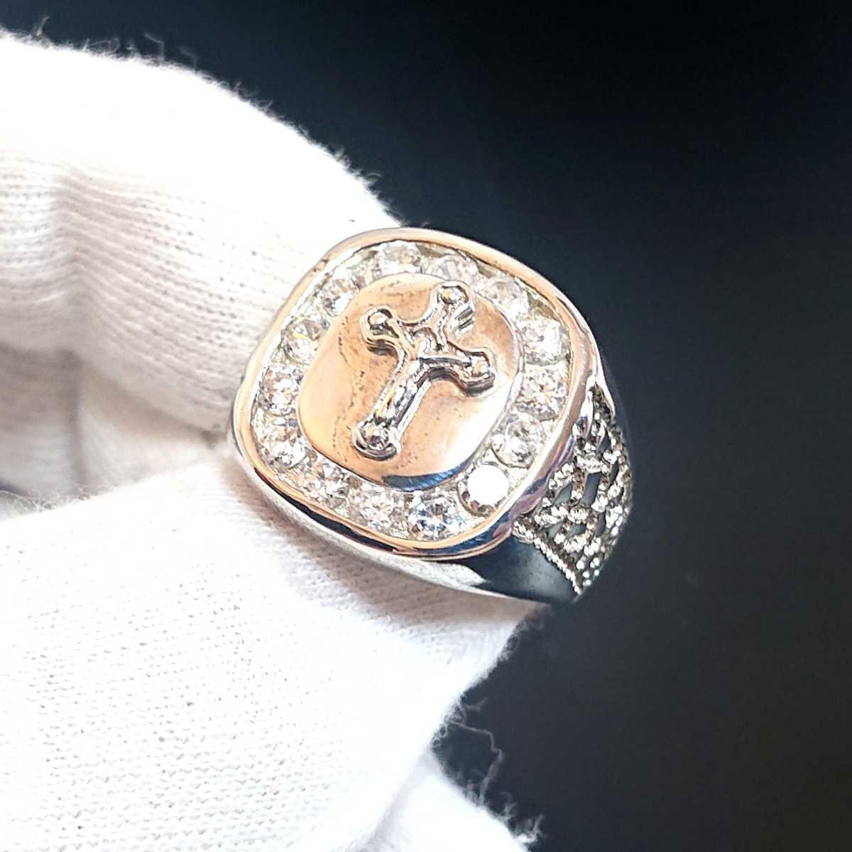 十字架の周りに経年による銀独特の変色、汚れがあります。