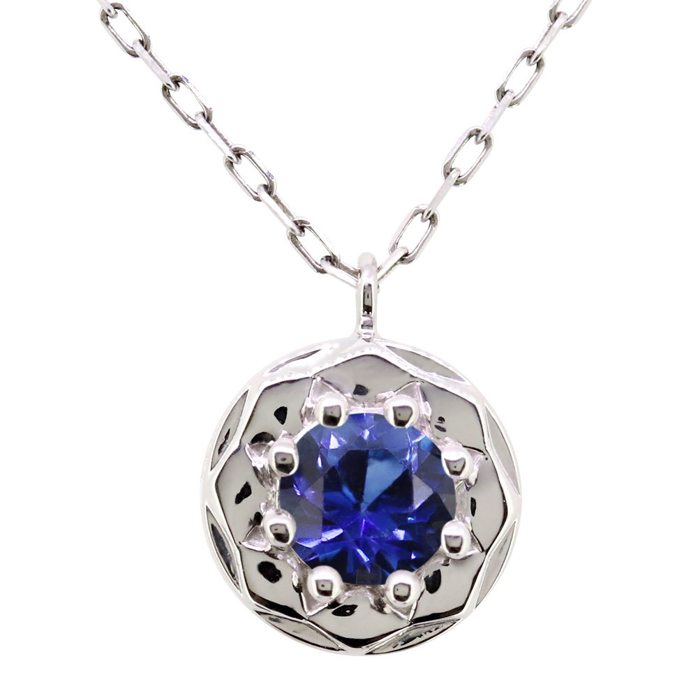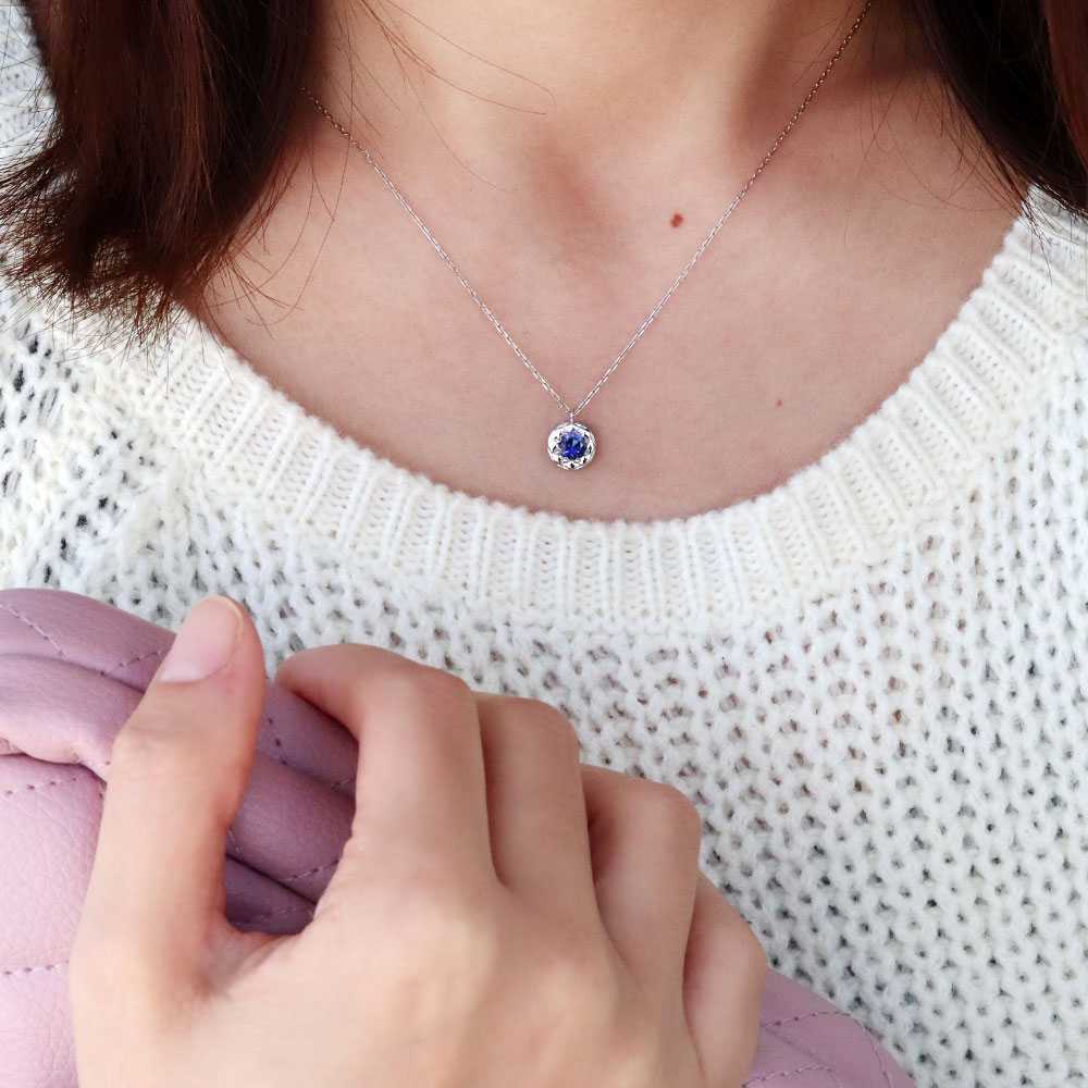 一粒のサファイアが胸元で美しく輝く。シンプルで合わせやすい大人可愛いアイテムです。