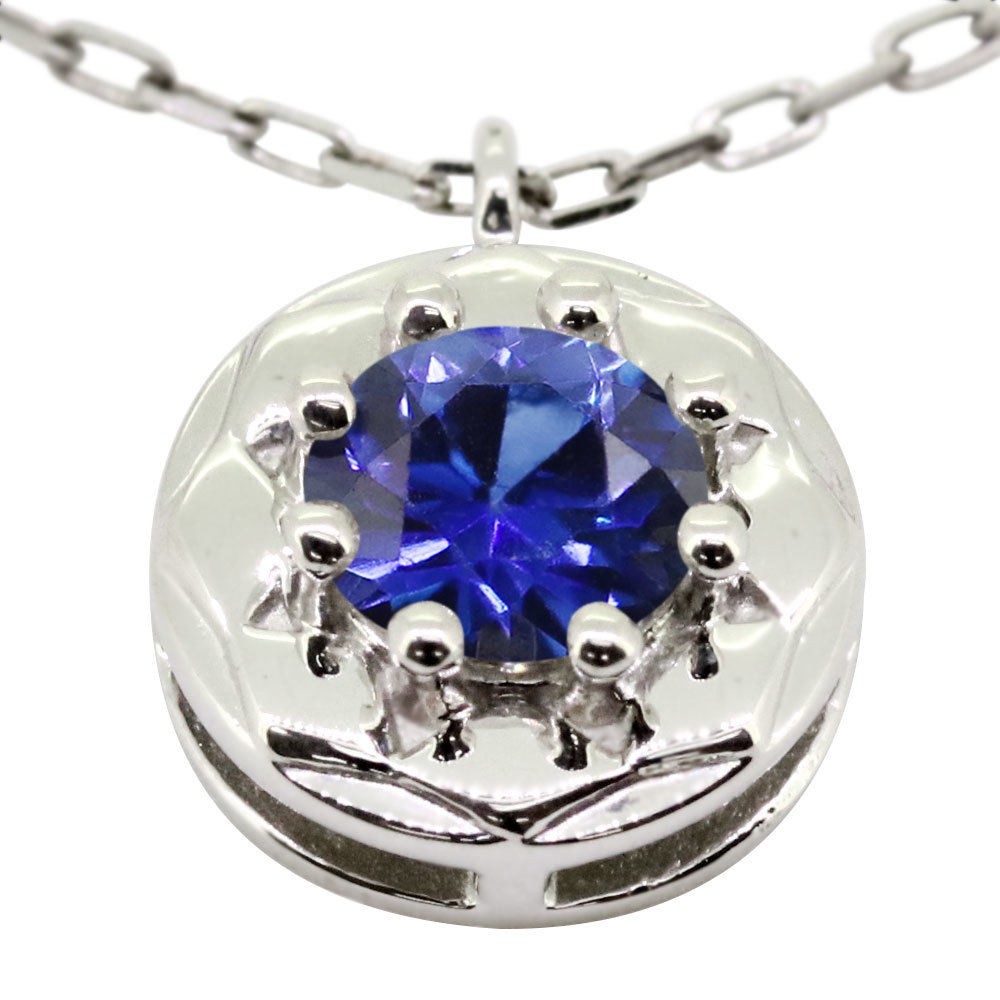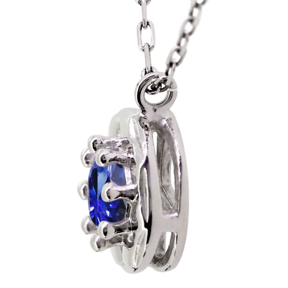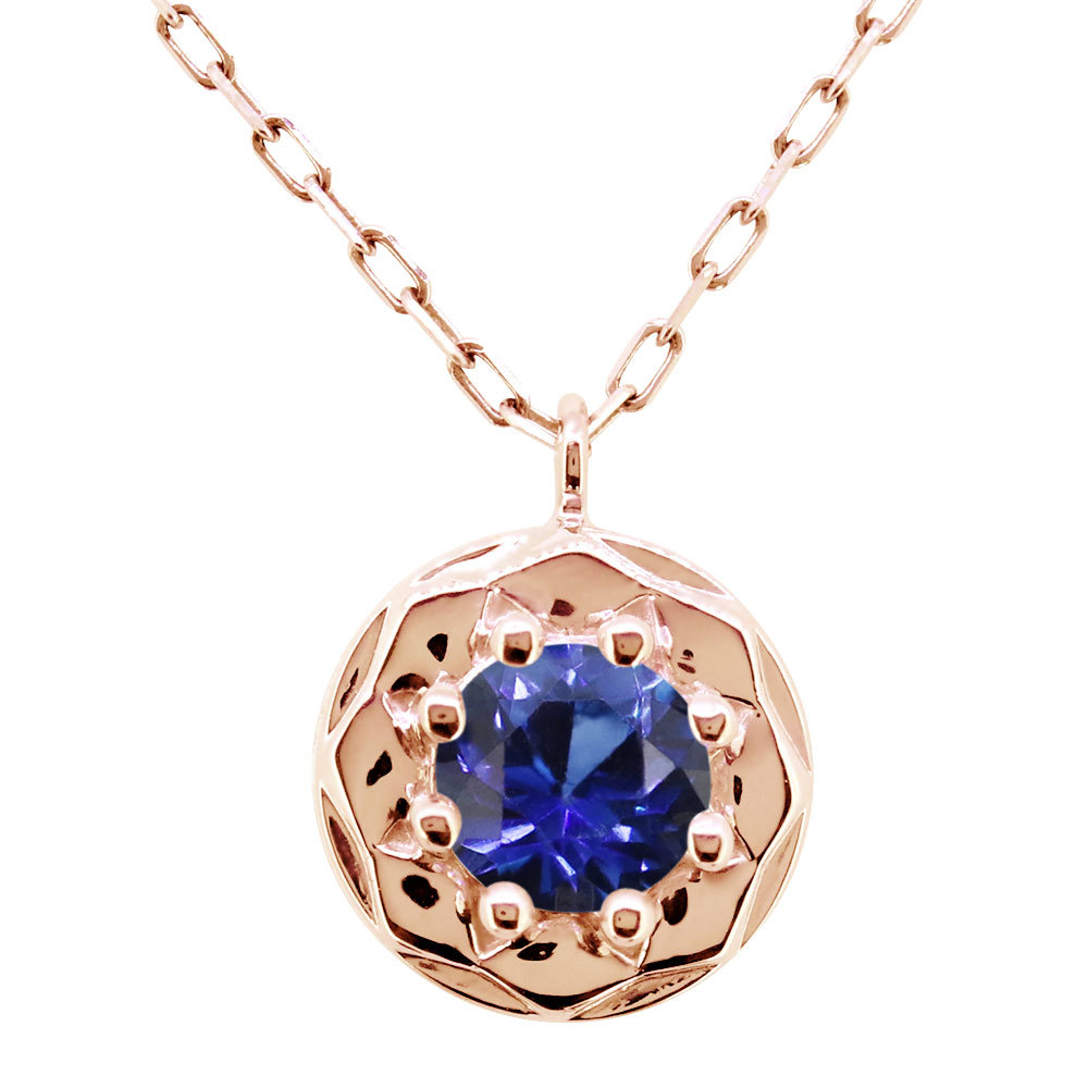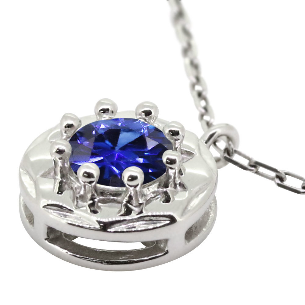 9月誕生石サファイアを使用した18金製の、レディースネックレス(ペンダント)です。
