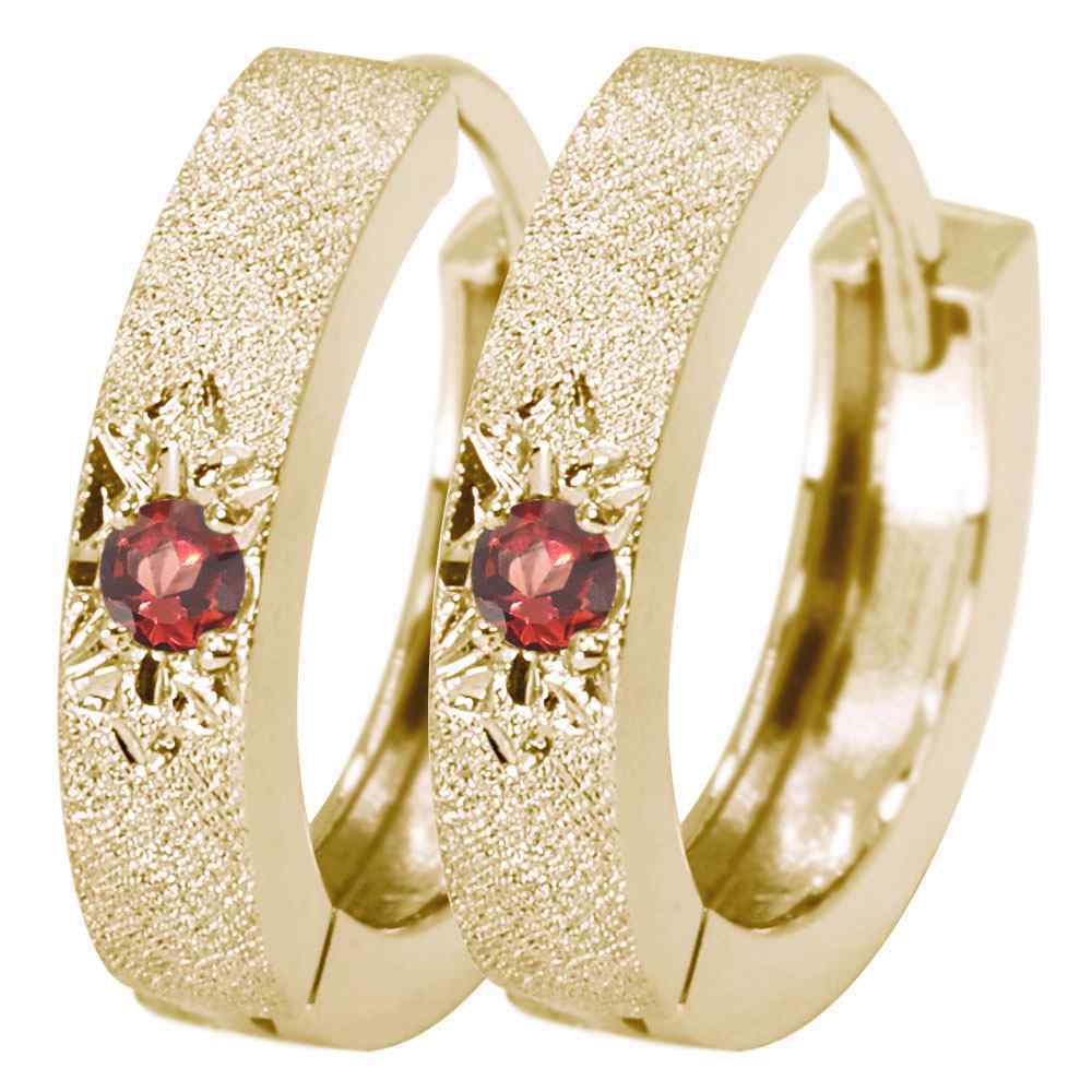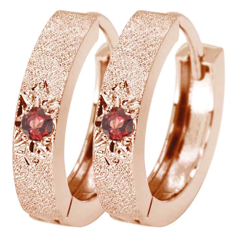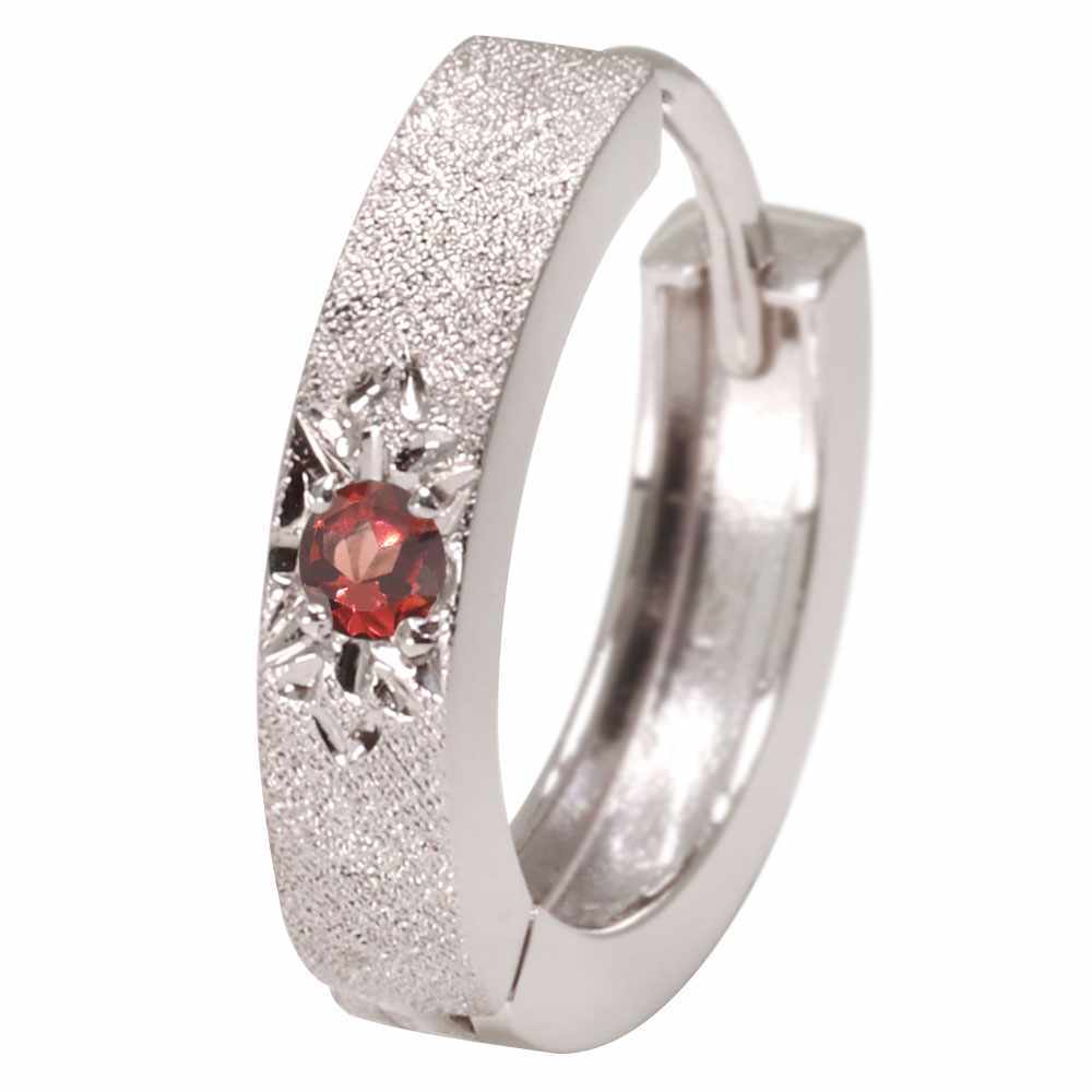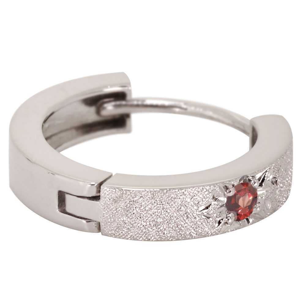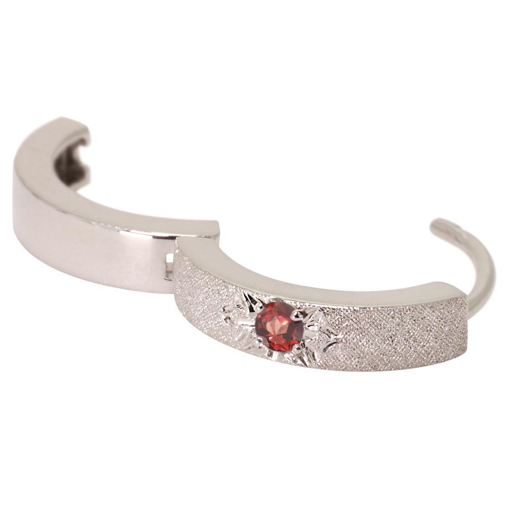 1月誕生石ガーネットを使用した18金製の、レディースフープピアスです。