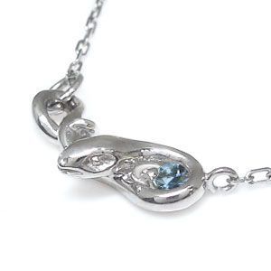 3月誕生石アクアマリンサンタマリアを一粒使用したプラチナ製の、スネーク(蛇)モチーフ・ネックレスです。