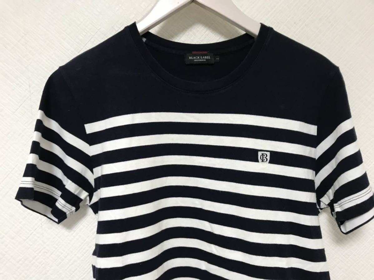 商品名:本物ブラックレーベルクレストブリッジBLACK LABELコットンボーダー柄半袖Tシャツメンズビジネススーツアメカジサーフ2M紺ネイビー