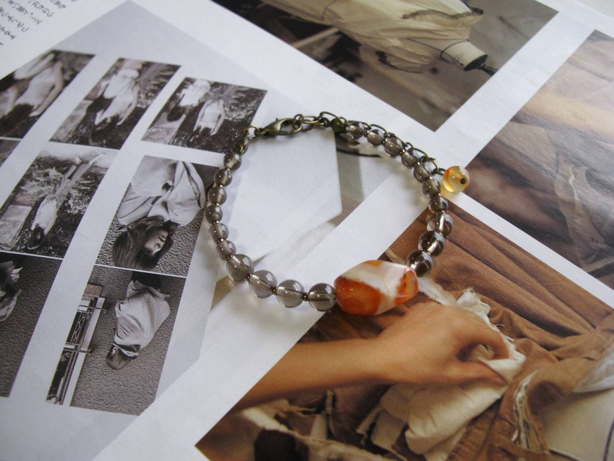 巴里色を繋いで・・シリーズです♪カーネリアン見本帖・・シックなスモーキークォーツのブレスレットです♪深いオレン ジがキュートな色合いのカーネリアンをトップに合わせて可憐な表情です♪スモーキークォーツは4ミリ、6ミリの丸玉、トップのカーネリアンは16ミリ位の ラフカットです♪ブレスレットの長さは16センチ+アジャスター5センチで最長21センチ位です♪お揃いのシリーズも出品しています♪シン プルで合 わせやすいデザインを考えて作りました♪ハンドメイドをご理解いただいてノーリターン、 ノークレームでお願いします♪