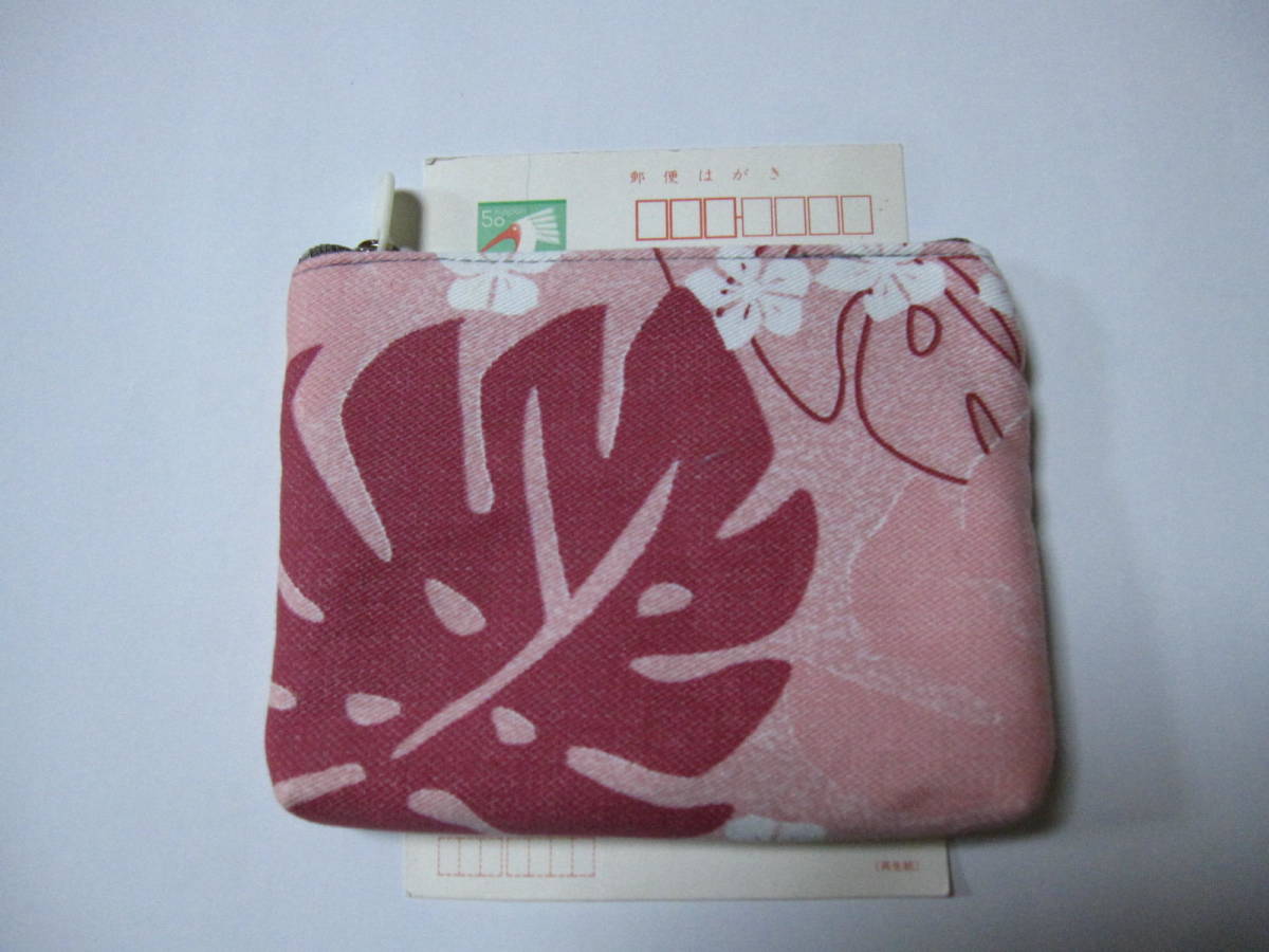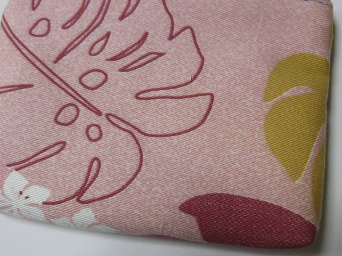 手作り 小物 ポーチ ハワイアン柄 モンステラ 葉っぱ 花 模様 リーフ 防水 ハンドメイド 格安 財布 充電器 男女 兼用 可愛 お洒落 ピンク