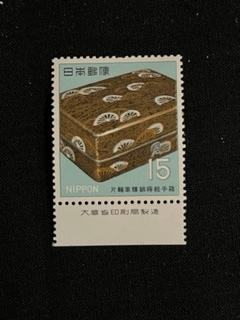 切手 単片 【第1次国宝シリーズ】平安時代 片輪車螺鈿蒔絵手箱 銘板付き