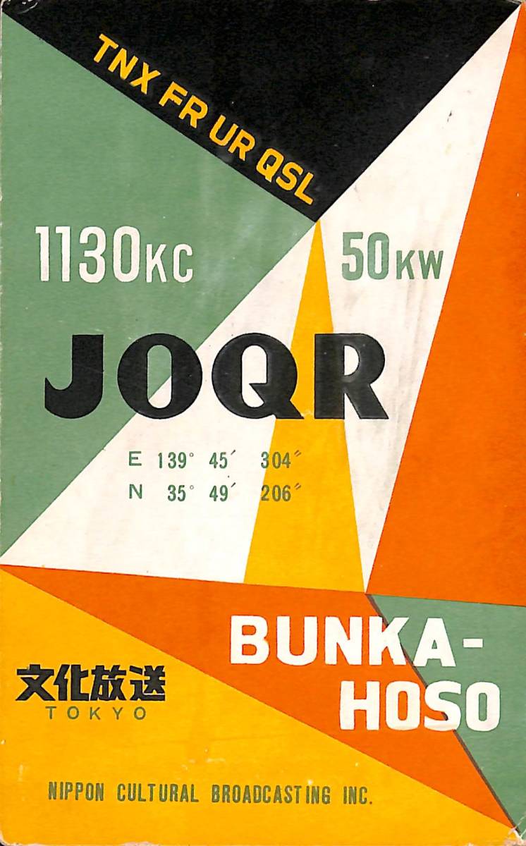 | 商品名】・・・JOQR(★文化放送)のベリカード。 【コメント】・・・昭和30年代~40年代のベリカードは大変貴重です! ■当方、1枚のみ所有していますので即決で落札者様のコレクションになります! 【国名・地名】・・・日本★東京都。 【受信データ】・・・1957年(★昭和32年)1月22日・MW1130KHZを受信。 【記載事項】・・・受信者の住所・氏名が記載。 【状態】・・・シワ、汚れ、シミ、焼け、色あせ等があります。 ■カードの状態は★画像を参考に判断して下さい。 ■この機会にぜひこのベリカードを貴方のBCLコレクションに加えて下さい! | |