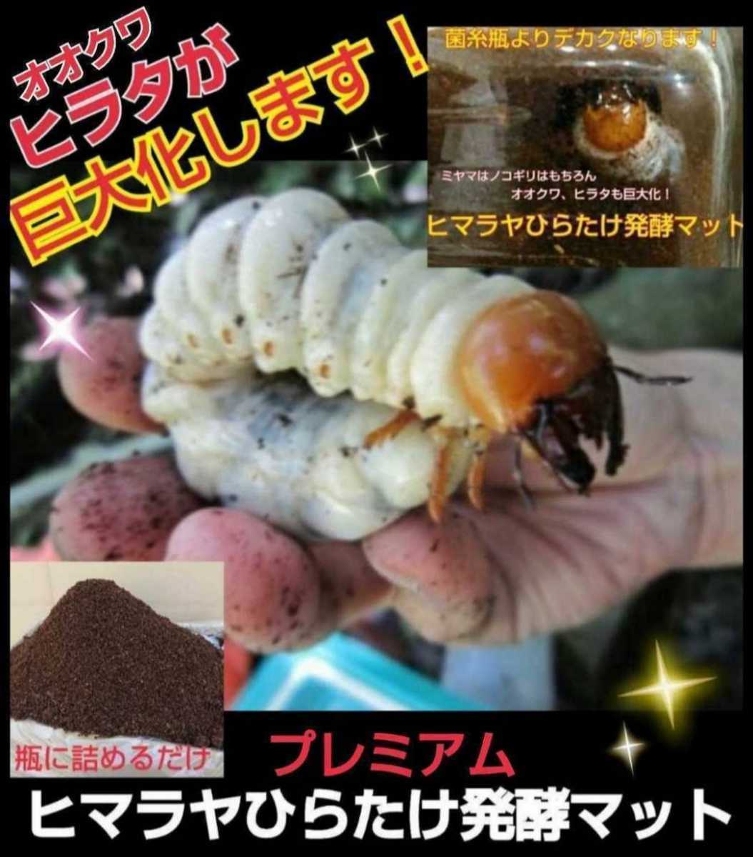 同じ菌床でもヒマラヤひらたけの菌糸から仕上がった菌床はクワガタが最も好み大型個体になります。 ヒマラヤひらたけは高価で入手困難となってます。 | ||