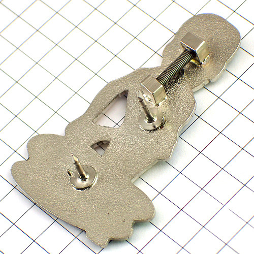 ピンズは、裏側に針が付いており、金属の留め金でとめるようになっています。 留め金が付属しています。新品の留め金も一緒に発送いたします。 | |
