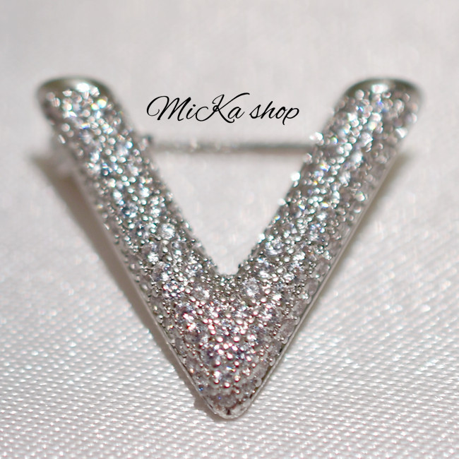~ジルコニアブローチ V字 シルバー 小~●いろんなシーンで使える、付け外しやすいブローチです●シャツ、帽子、スカーフ、ストールなどに●サイズ:2.0x1.8cm●色:シルバー●材質:ジルコニア、銅