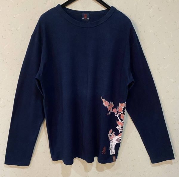 *エターナル 倉 備中倉敷工房 和柄 濃紺 和紙 プリント 長袖 Tシャツ トップス 三/L       BJBA.AJ