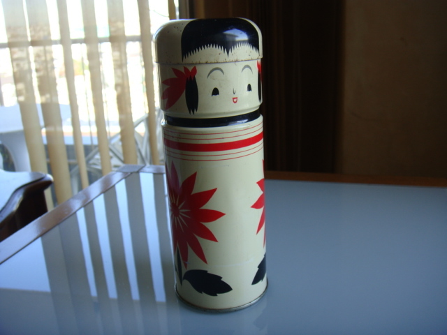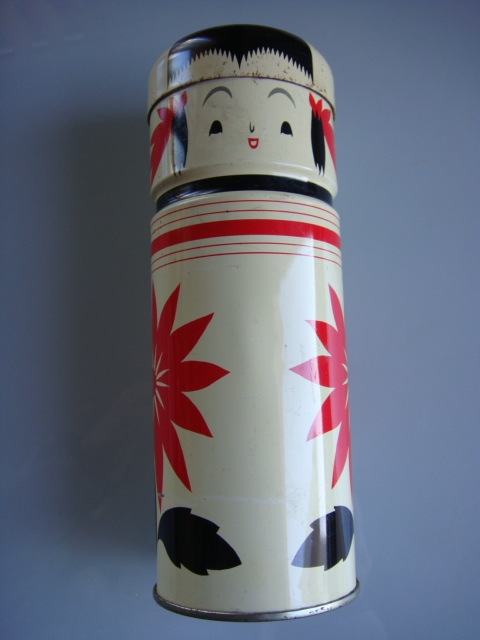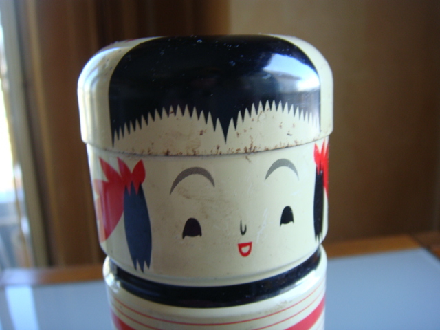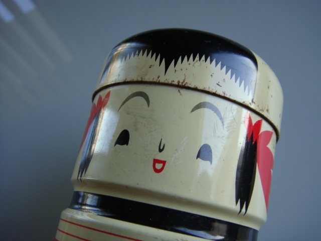 ◆ 昭和レトロ こけし スチール製のこけし 茶缶 レア 1970年代 程度良好 実用可 民芸 レターパックプラス発送 手渡し可