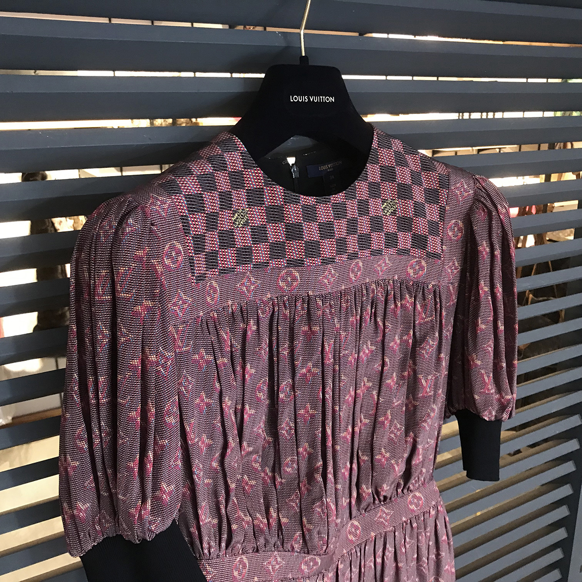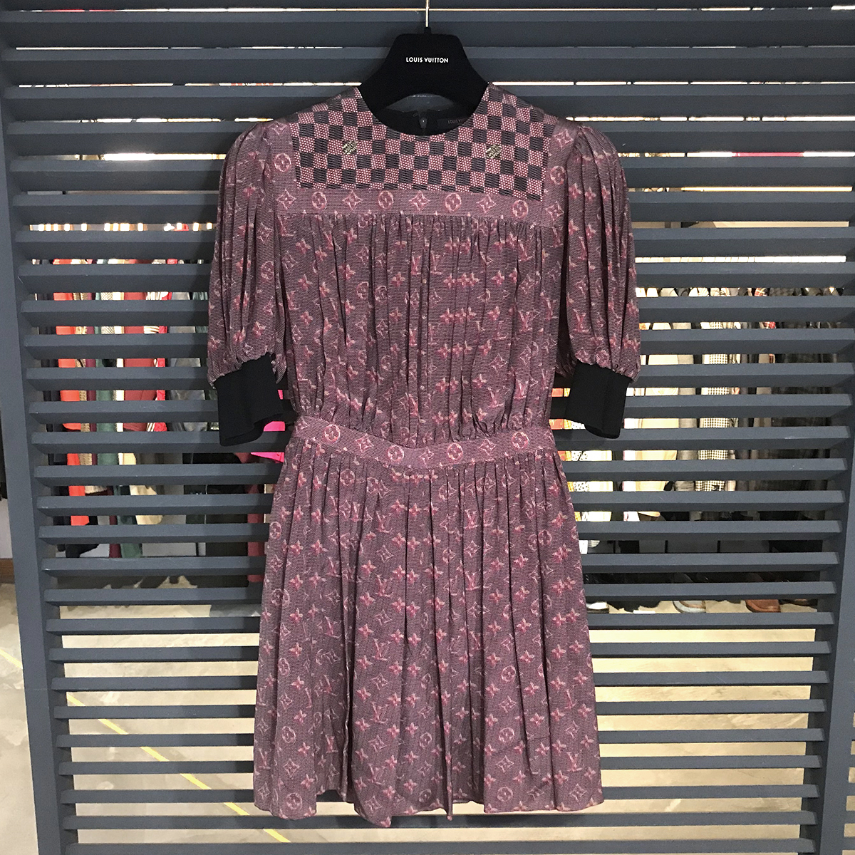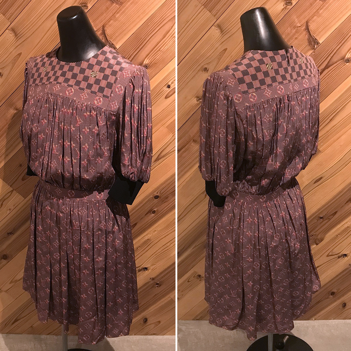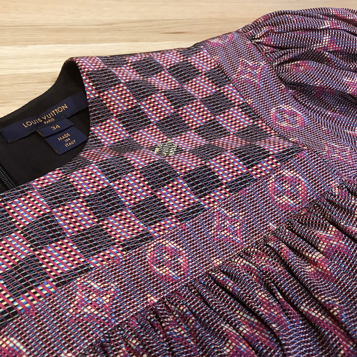 【新品同様】ルイヴィトン LVポップ チュニック ドレス #34 レッド系マルチカラー モノグラム ダミエ シルク100% 09827