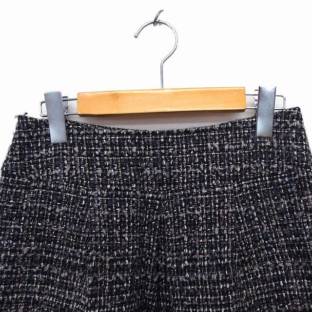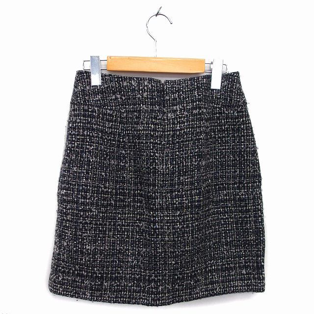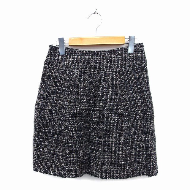 ノーリーズ Nolley's スカート 台形 ミニ ツイード ウール混 ラメ混 バックジップ 38 黒 ブラック /NT2 レディース