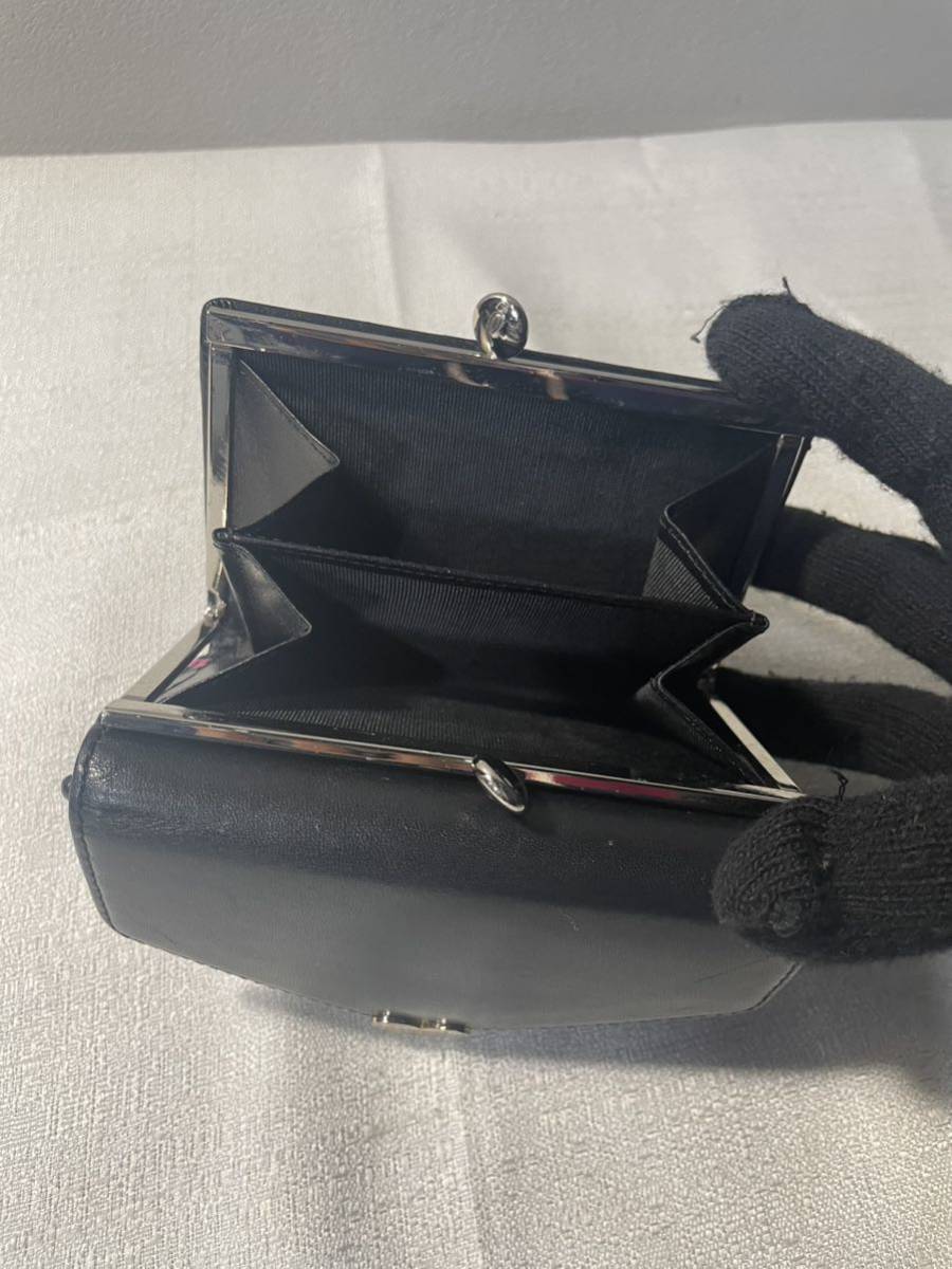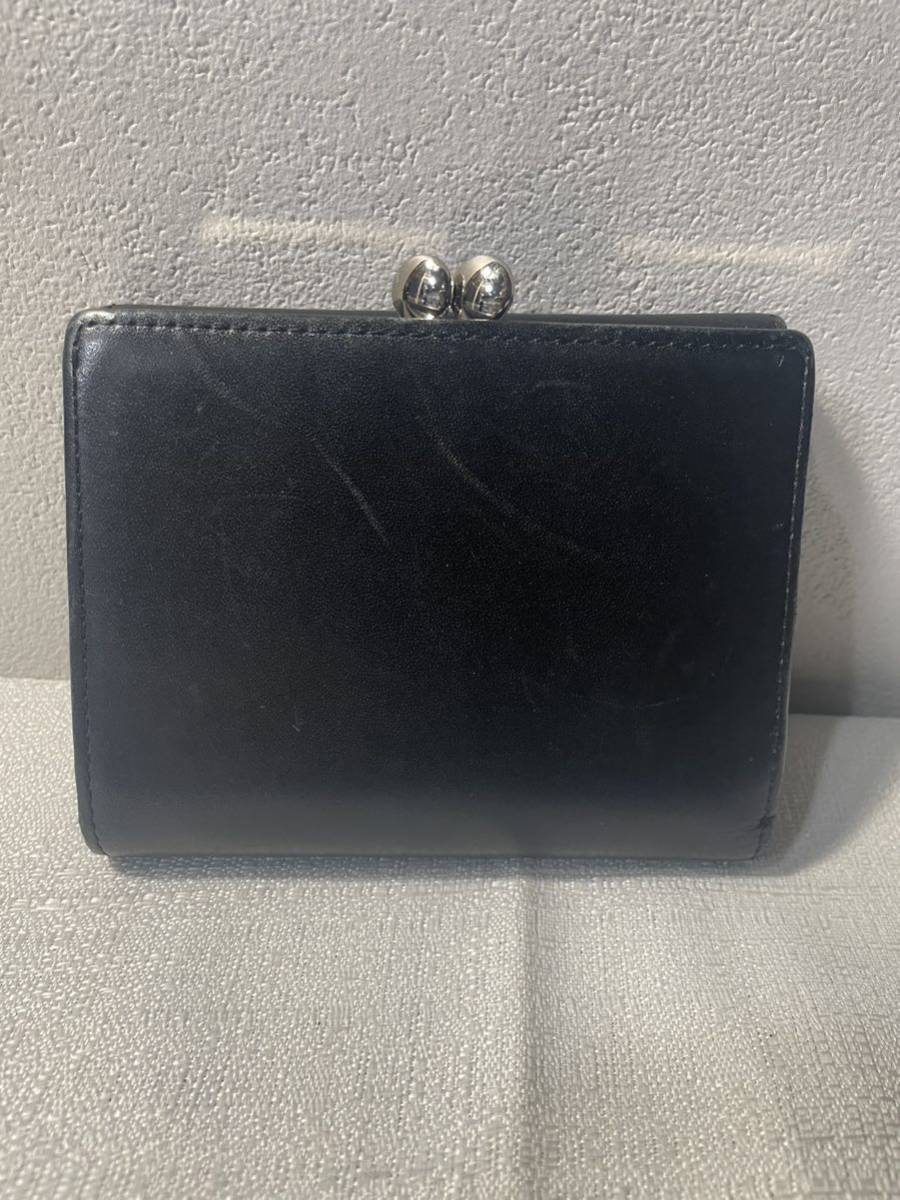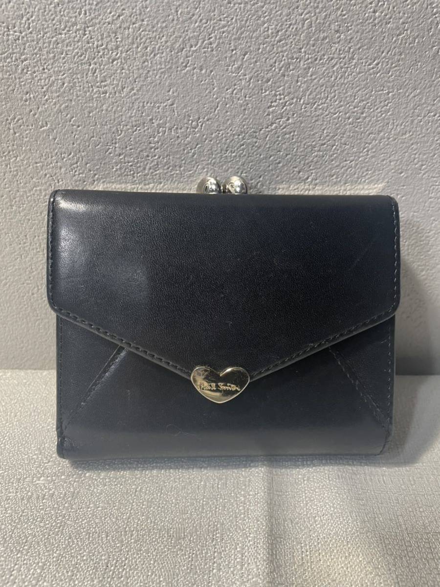 ポールスミスPaulSmith折り財布開閉ボタンがま口黒本革レザーレディース