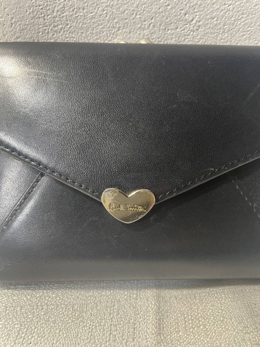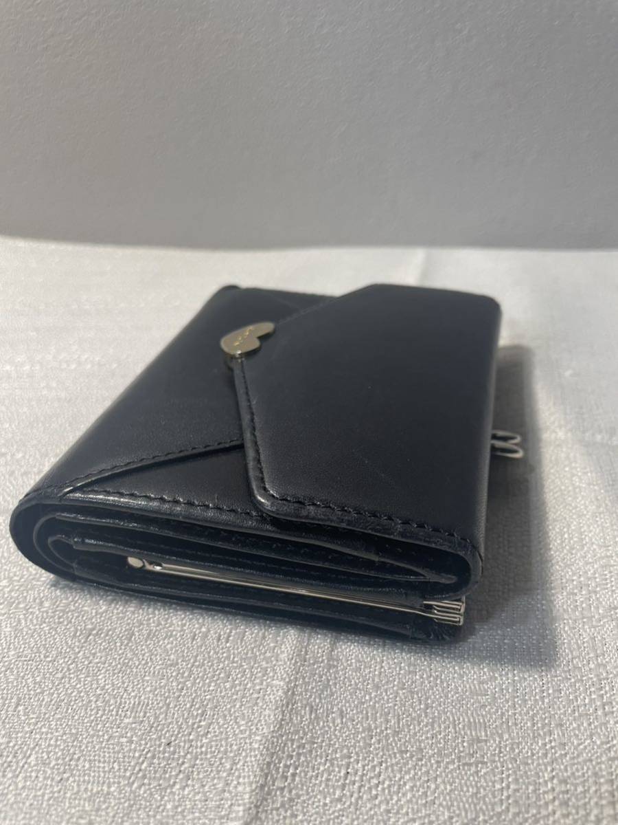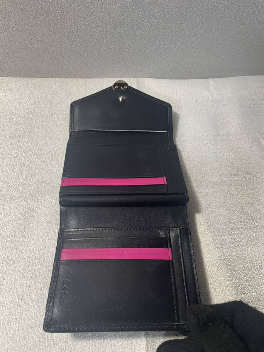 ポールスミスPaulSmith折り財布開閉ボタンがま口黒本革レザーレディース