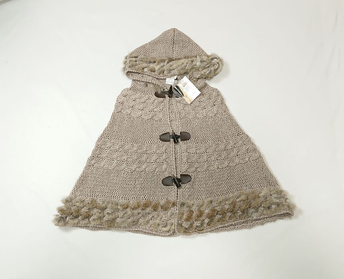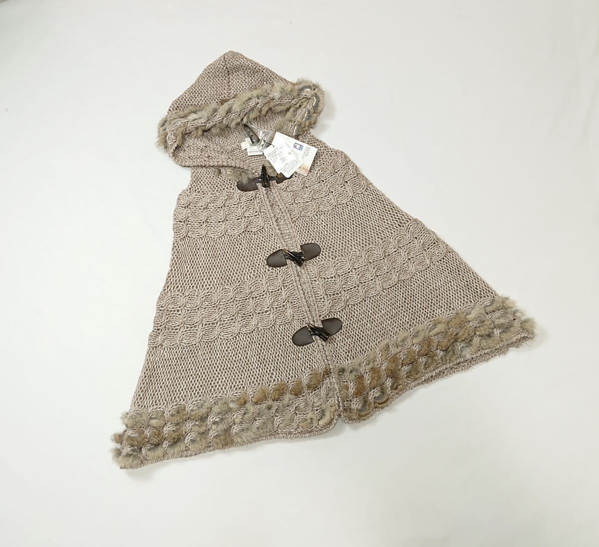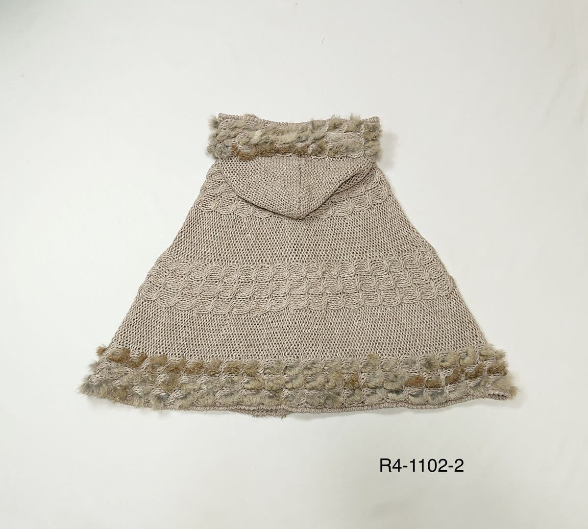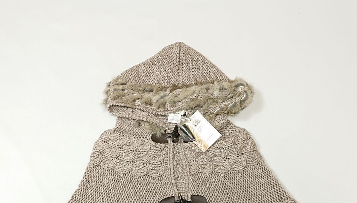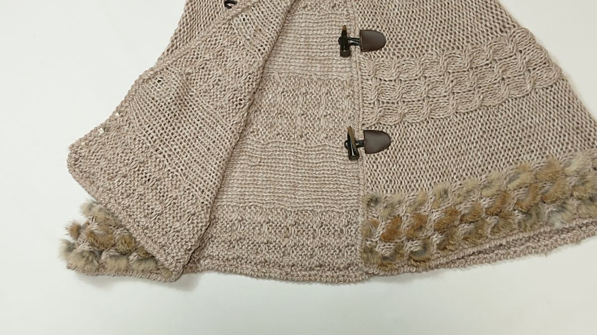 ・長袖 アルパカ混 ラビットファー付き ニット ポンチョの出品になります。