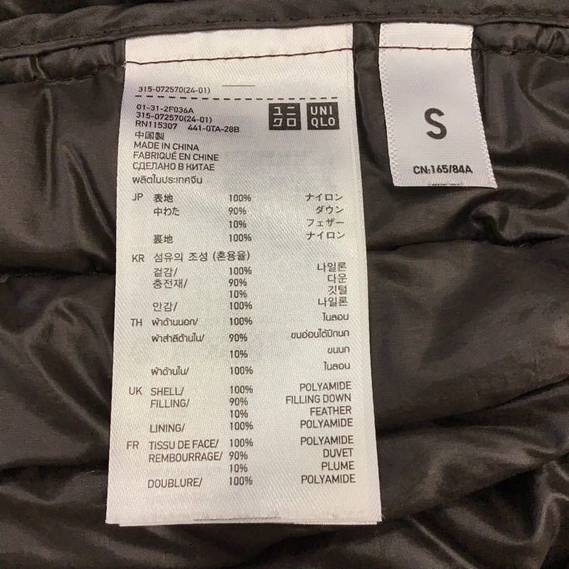 【ヤ032】UNIQLO ウルトラライトダウンジャケット Sサイズ パープル 長袖 スタンドカラー メンズブランド古着 ユニクロ 送料無料