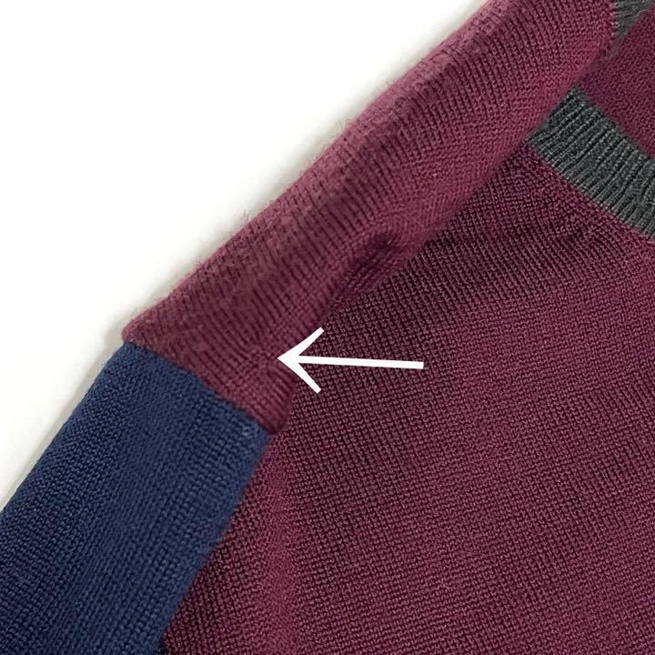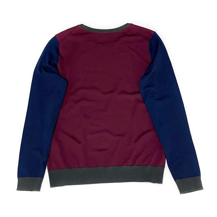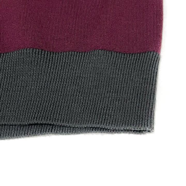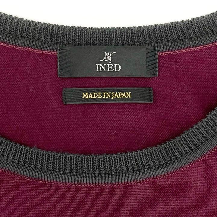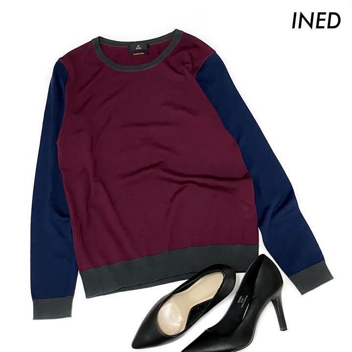 INED イネド★長袖ニット セーター 3色切替 ワインレッド