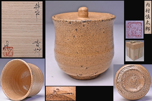 内村慎太郎 ★ 井戸 香炉 ★ 共箱 共布 栞 ★ 古作を思わせる枇杷肌 ★ 湯呑としても楽しめそうな逸品 ★ 香道具 唐津