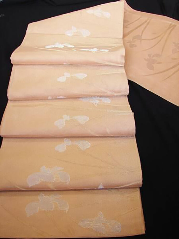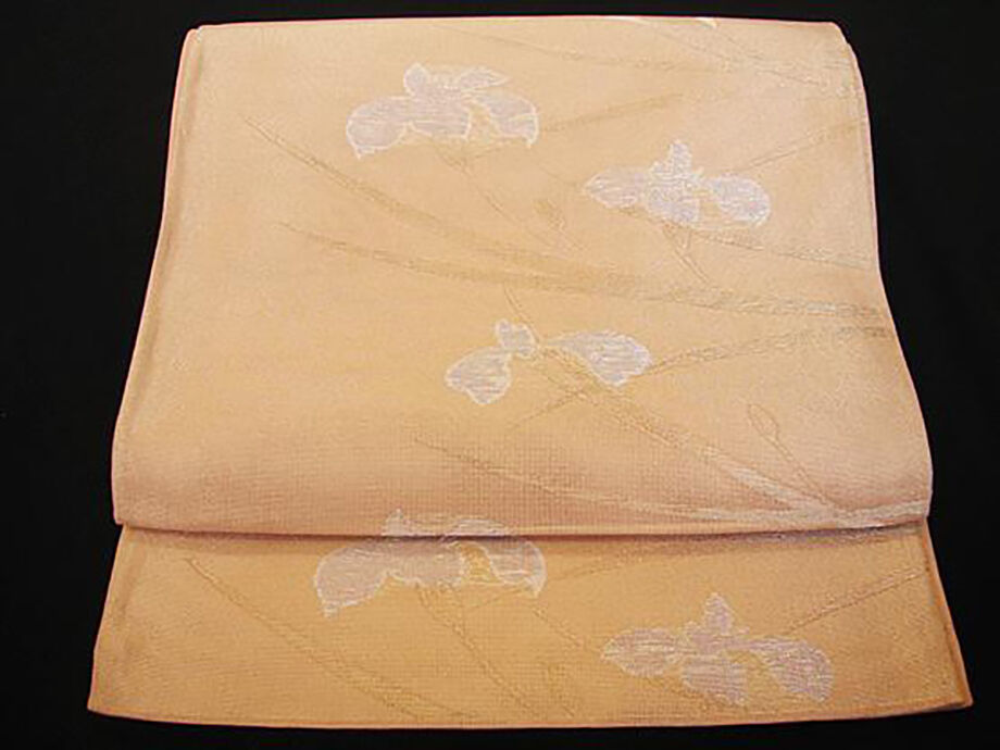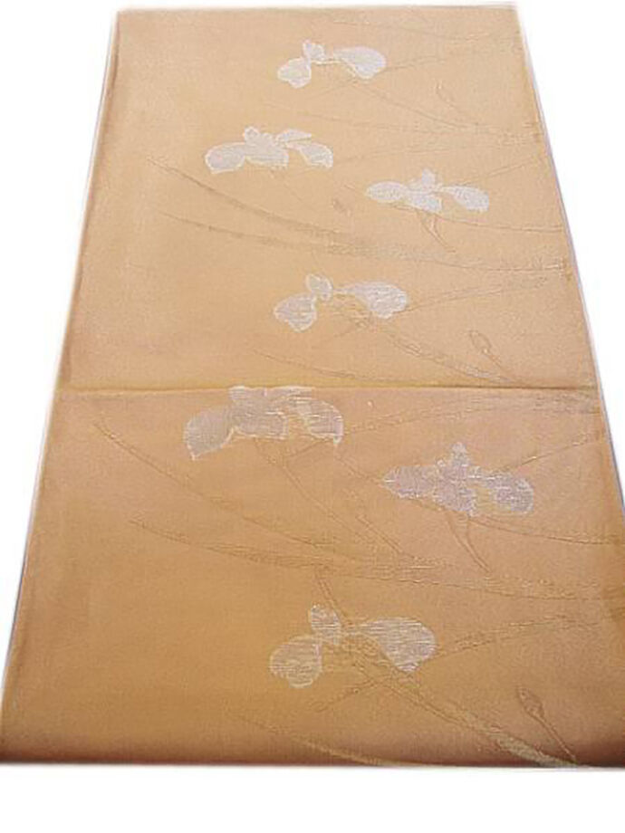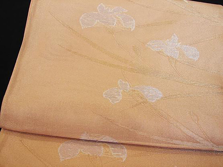 商品説明 | しなやかな手触り良い結び易く扱い易い「紗」の袋帯。 淡い生成り色地に金糸、銀糸の菖蒲の織柄。 六通柄。 ※軽くする為に帯芯がはいっておりません。 |