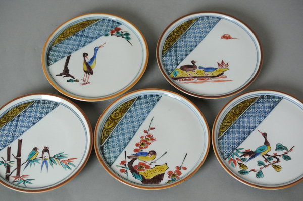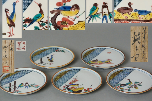| 【 浅倉五十吉 九谷 色絵 花鳥 絵変 銘々皿 5枚 共箱付き】 |