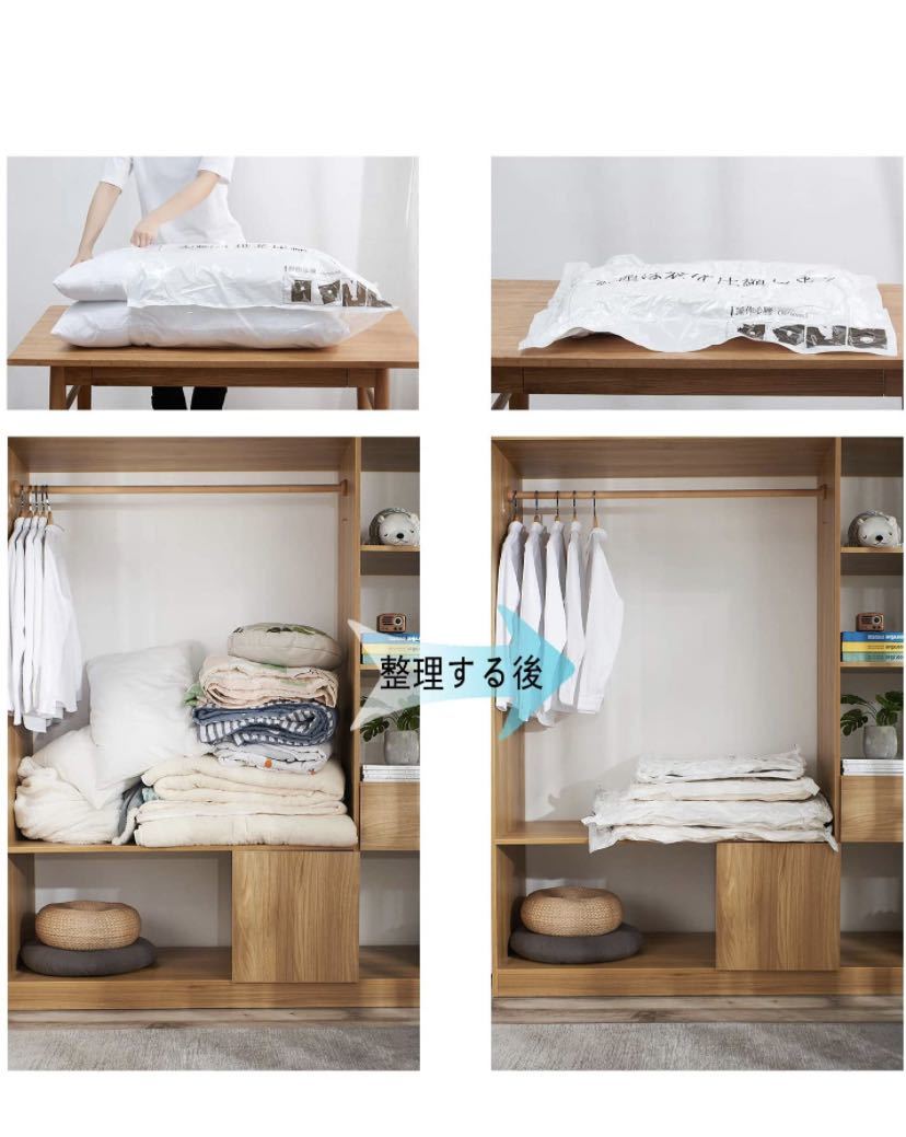 【スペースを節約】抜群な圧縮力で布団、枕や大きめの衣類などを簡単に収め、最大75%の収納スペースを省くことができます。
