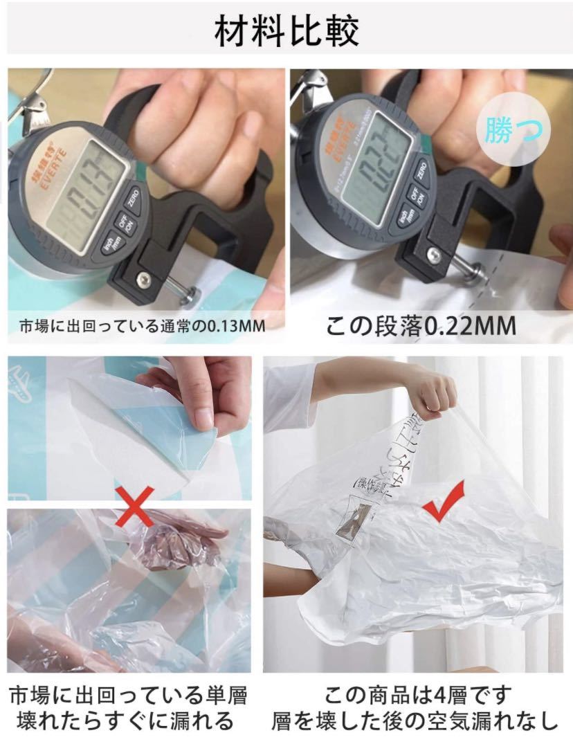 真空圧縮収納バッグのセット・素材 : 4層耐久性に優れたプラスチック製