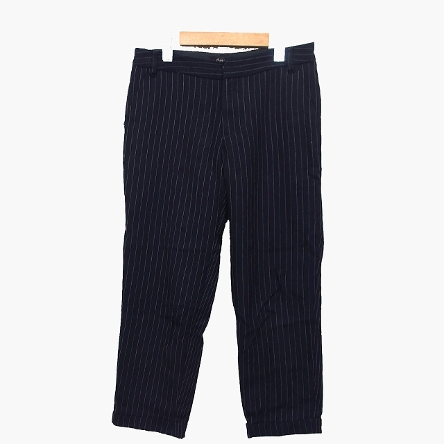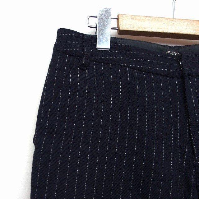 レイビームス Ray Beams テーパード パンツ ストライプ 柄 ロールアップ ウール 毛 0 ブラック 黒 /HT23 レディース
