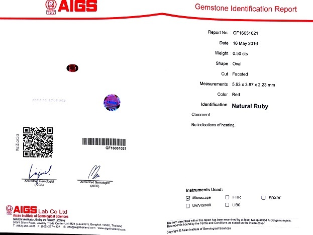 新品未使用品 『AIGS Lab Co Ltd』非加熱証明付鑑別書付 | ||