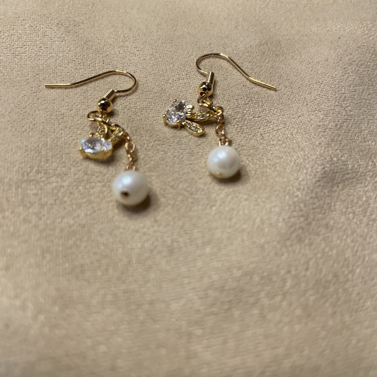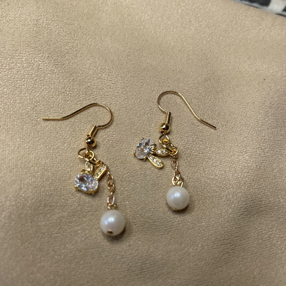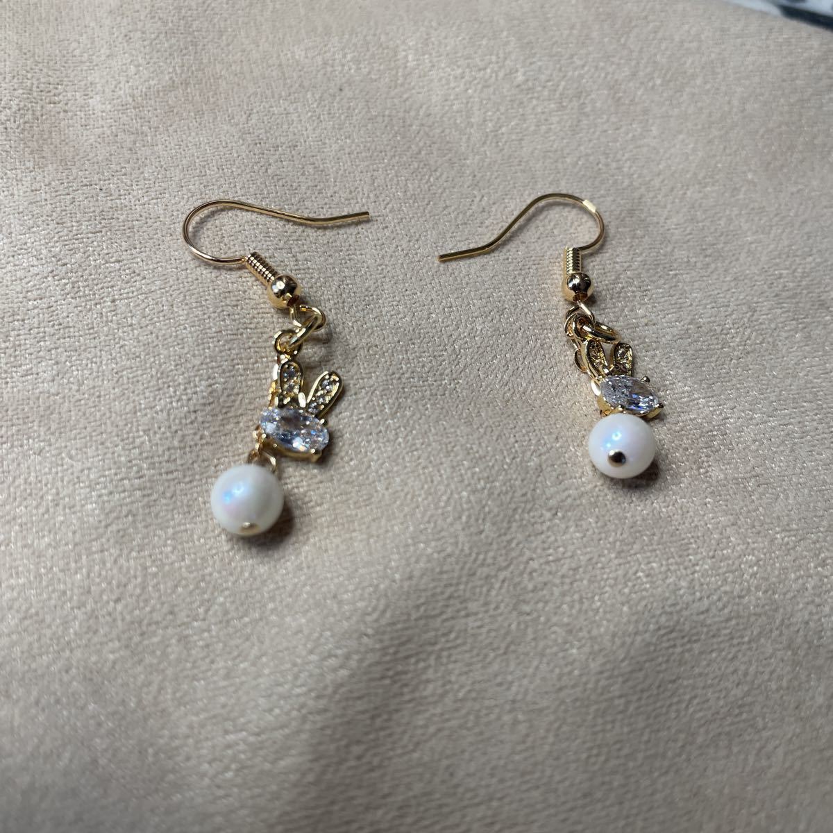 5.5ミリの本真珠とジルコニアのウサギを合わせました。とても可愛いです。フックは真鍮に18金メッキしたものを使用しております。