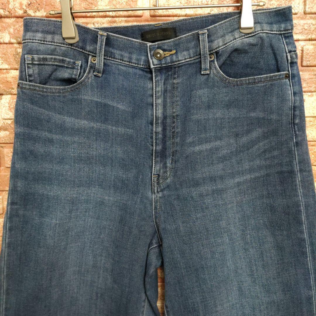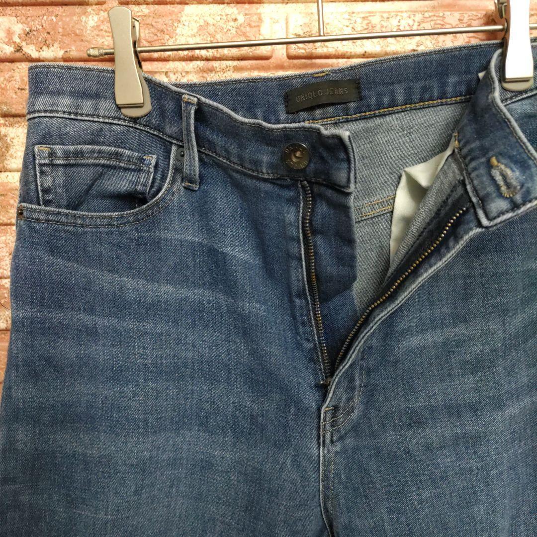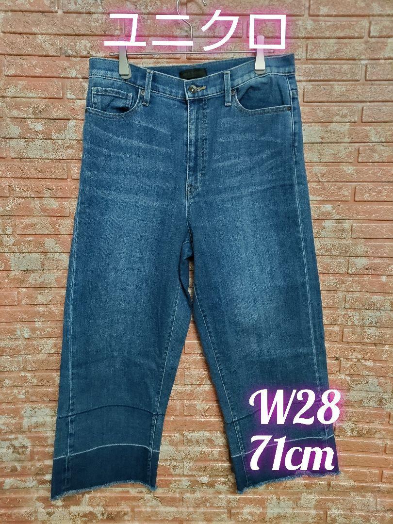 ユニクロ ハイライズ ワイドフィット クロップドジーンズ カットオフ W28