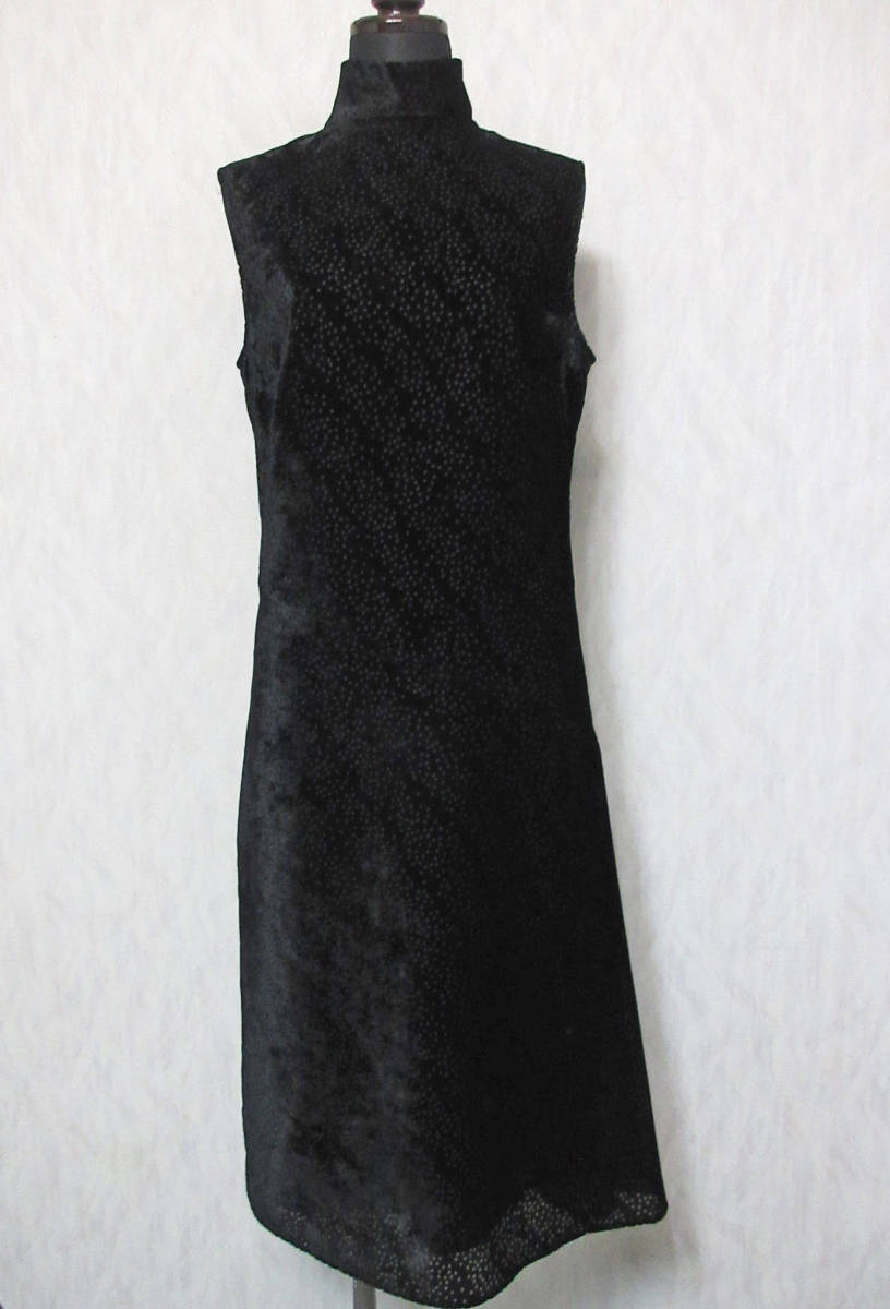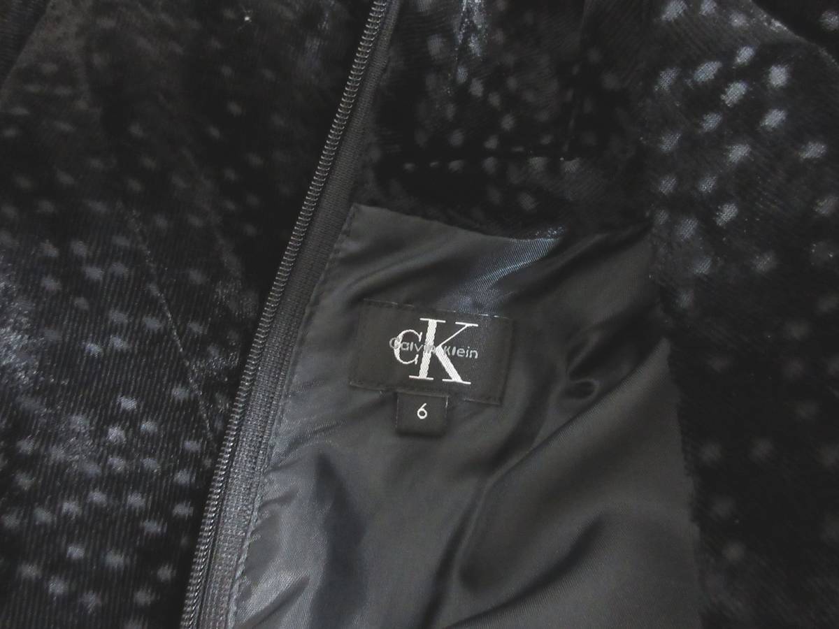 ck カルバンクライン Calvin Klein ハイネック ノースリーブ ワンピース ベロア 総柄 黒 ブラック 6 yg2724