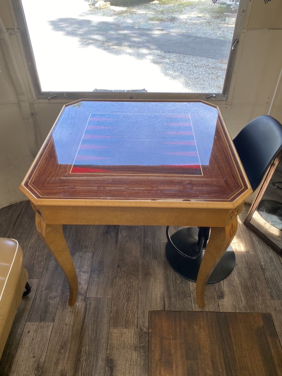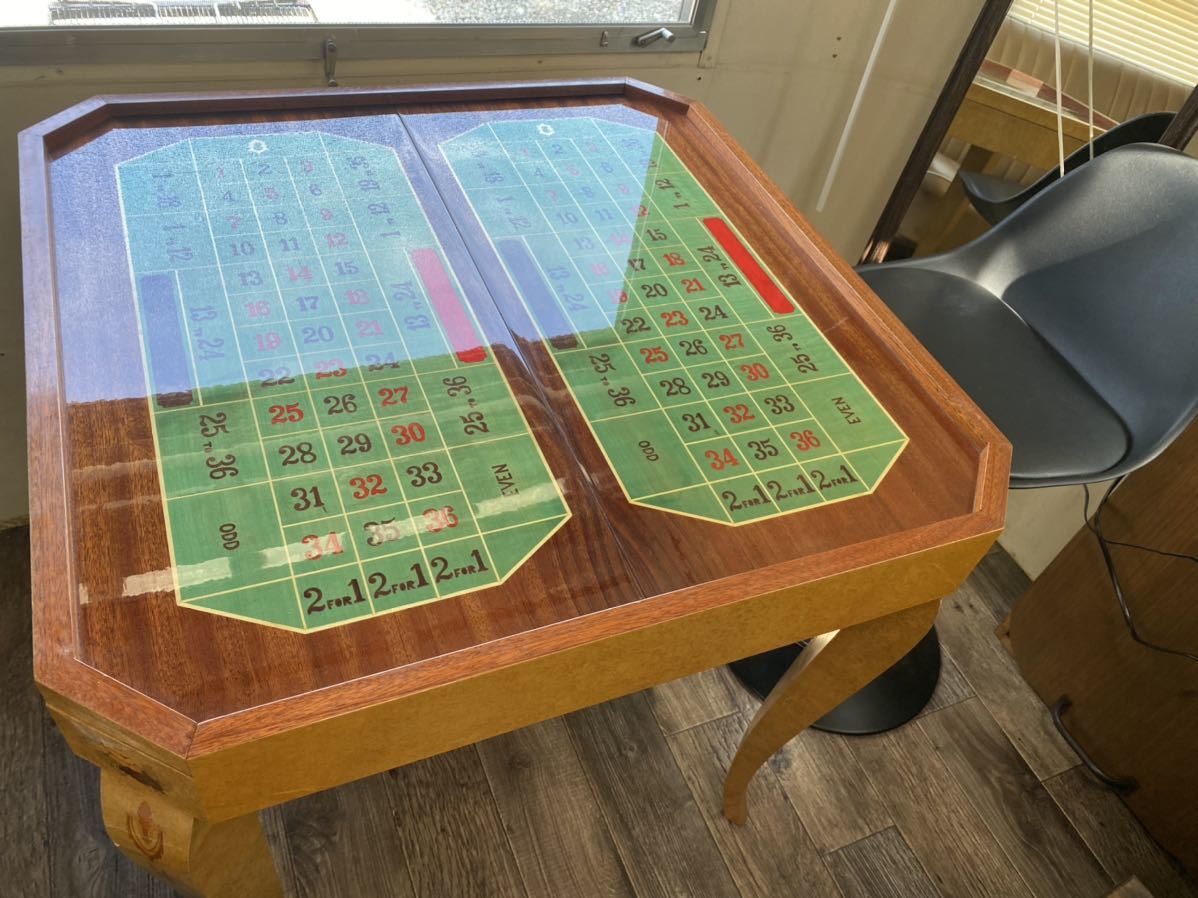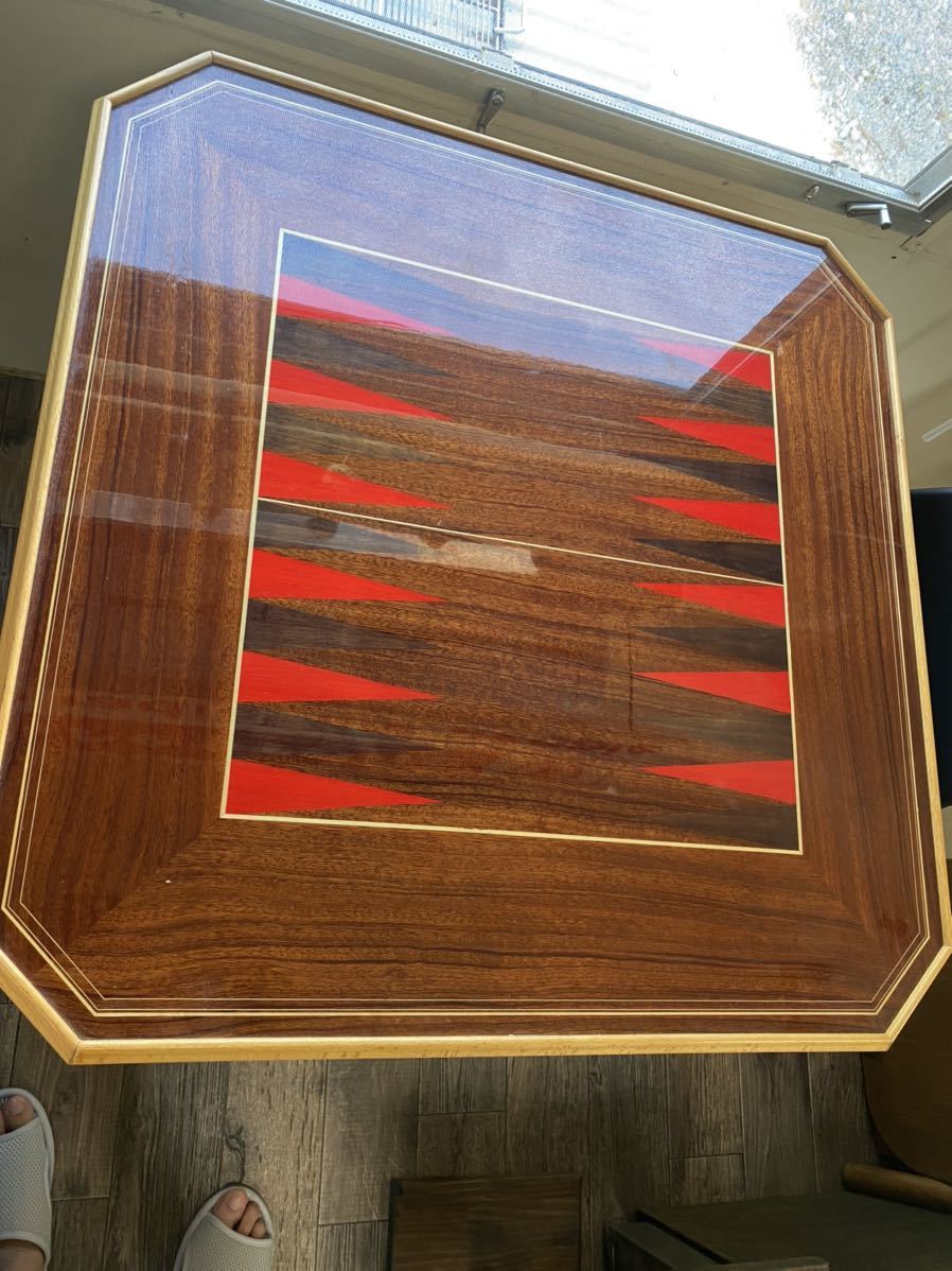 先日久しぶりに保管場所に見に行ったら夏の暑さにより、天板のクリアに数箇所ひび割れがあったので値下げします!画像の赤黒の模様の面です。