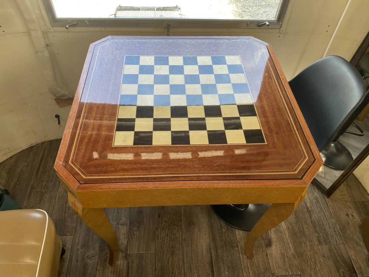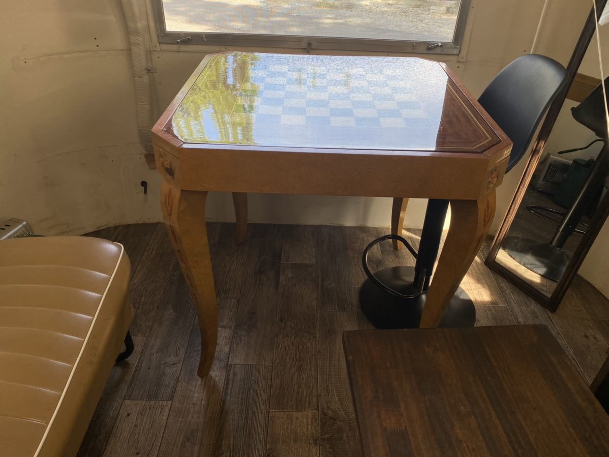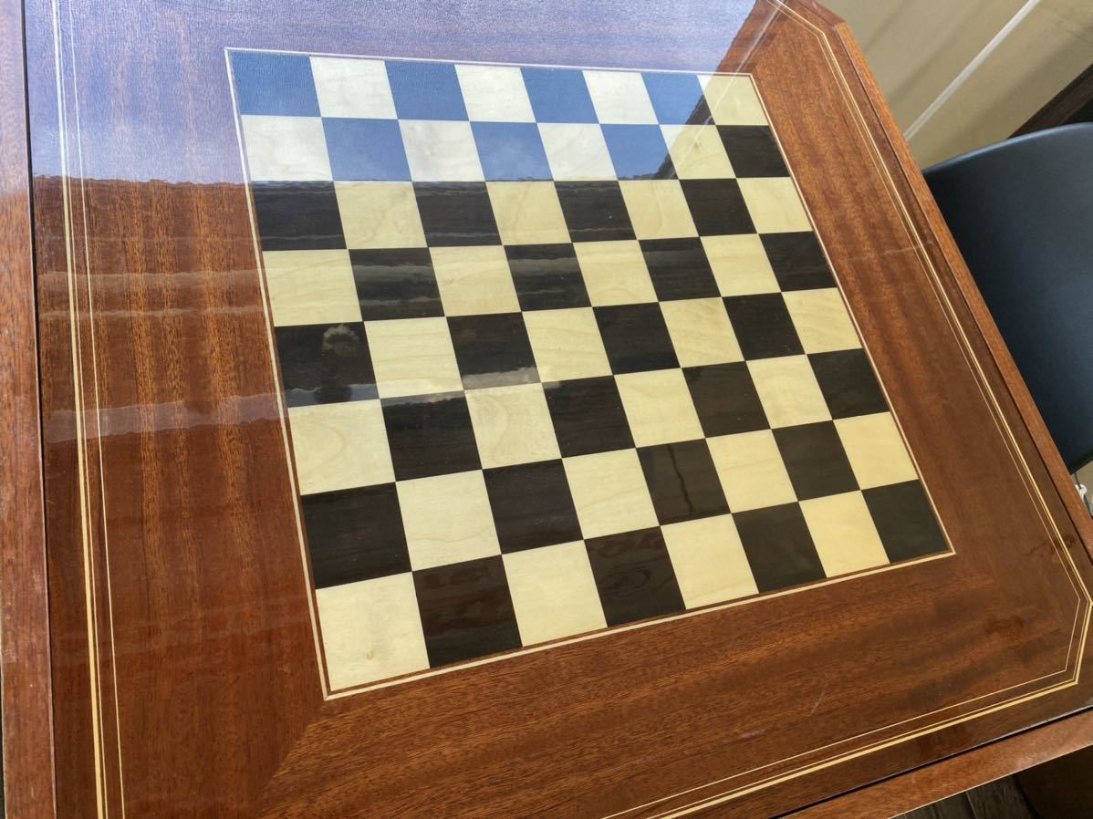 先日久しぶりに保管場所に見に行ったら夏の暑さにより、天板のクリアに数箇所ひび割れがあったので値下げします!画像の赤黒の模様の面です。