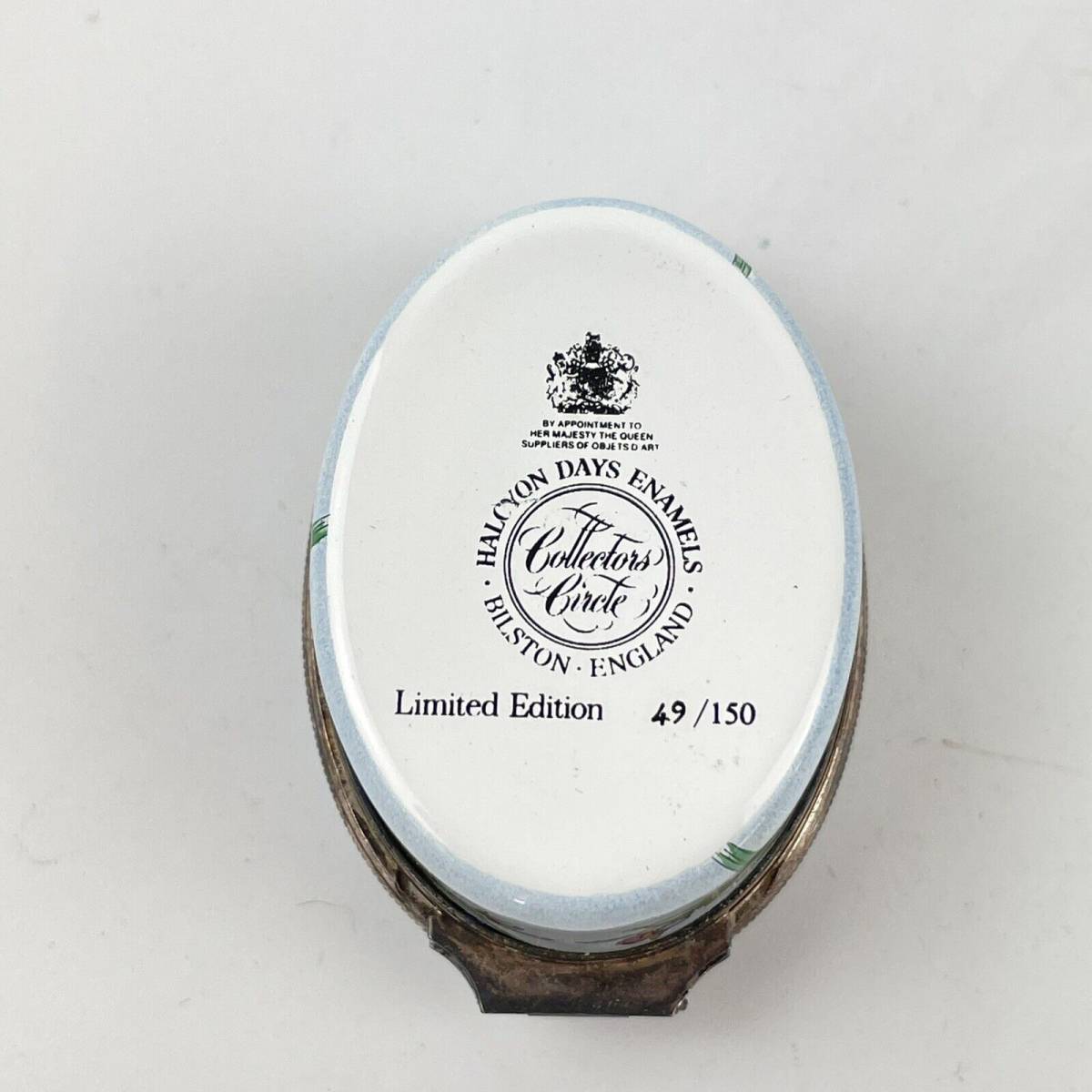 | HALCYON DAYS ENAMELS ハルシオンデイズのエナメルケースです。 付属の説明書に、アルフォンス・ミュシャ作サラ・ベルナールのポスターから インスパイアされたデザインと明記されています。 サラ・ベルナールの生誕150周年を記念して作られたエナメルケースで、 150個作られ、エディション番号は49です。 ハルシオン・デイズ (Halcyon Days) は、エナメル細工などの製品を製造する イギリスの企業、またその銘柄です。 4つのロイヤルワラント(英国王室御用達認定証)を全て取得している数少ない 生産商の一つです。 また英国王室が国賓に対して進呈する伝統工芸品としても知らています。 日本の皇室にも、この会社の伝統工芸品が英国王室よりお祝いの品として 進呈されています。 サイズ:4×5.7㎝ 高さ2.5cm | |||