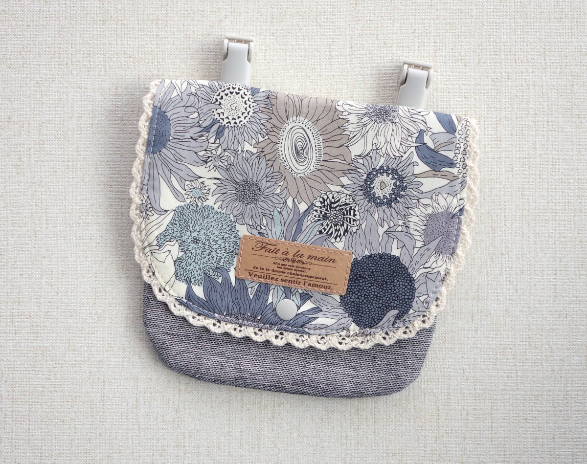 ★ ハンドメイド リバティプリント使用 ひまわり柄移動ポケット スモールスザンナ グレー ★