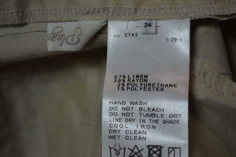 マテリアル | 麻/57%、レーヨン/39%、ポリウレタン/3%ポリエステル/1% |