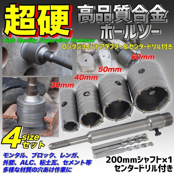 新品 コンクリートドリル セット ホルソー ホールソー 穴あけ sdsプラス シャフト 工具 モンタル レンガ ALC 外壁 30mm 40mm 50mm 60mm | |||