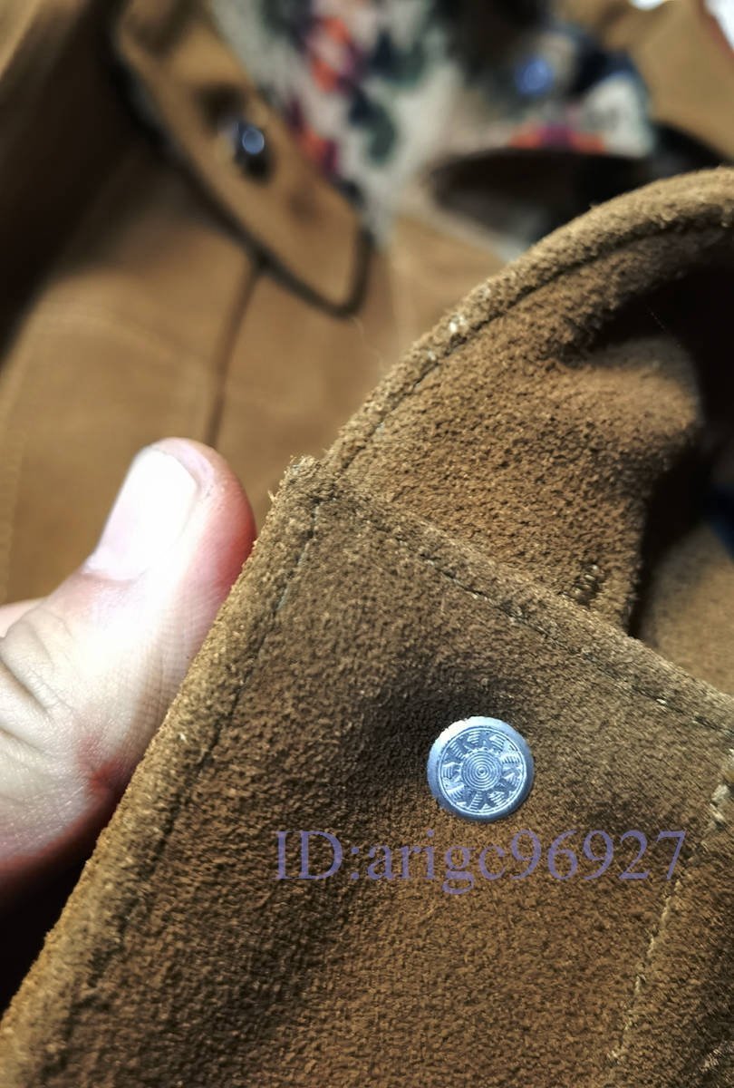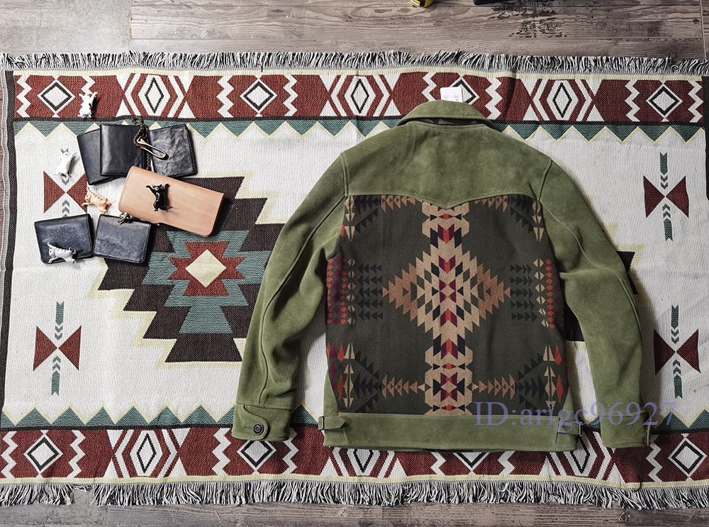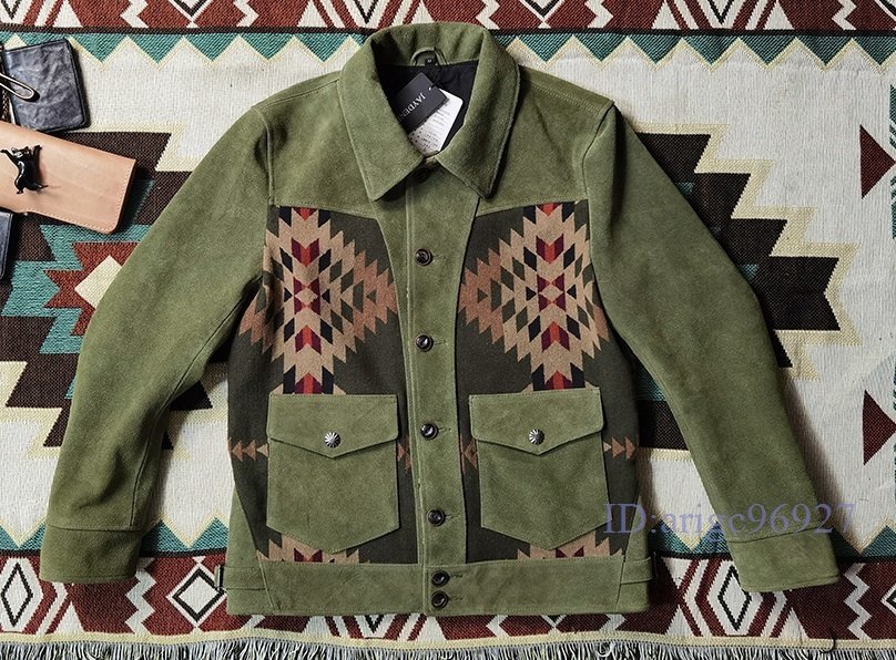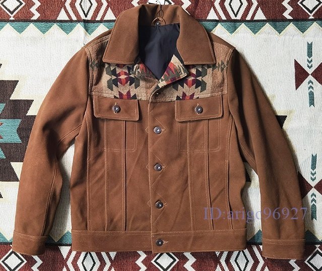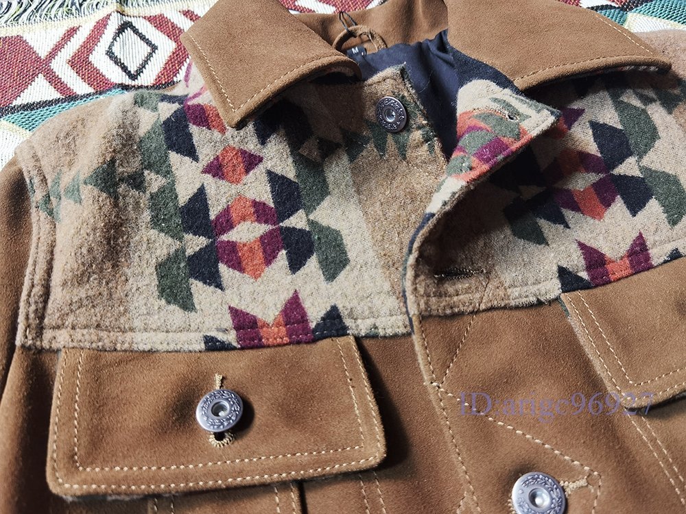 R619☆新品ヴィンテージ復刻 ヌバック ナバホ柄 切り替えジャケット◆牛革 レザー革ジャン 本革M~4XL ブラウン