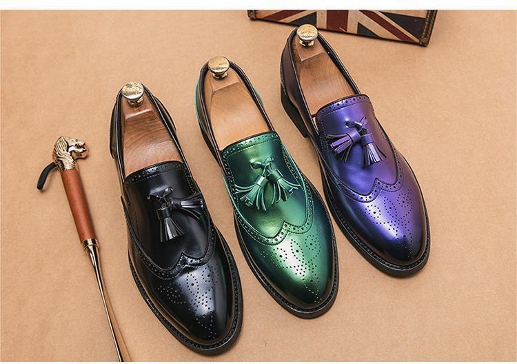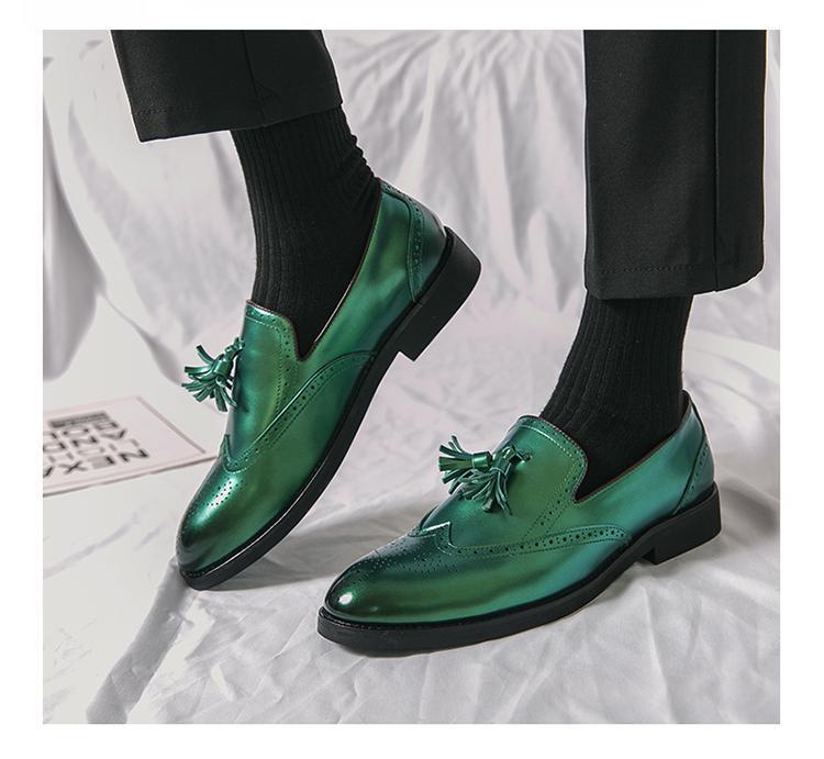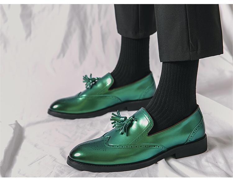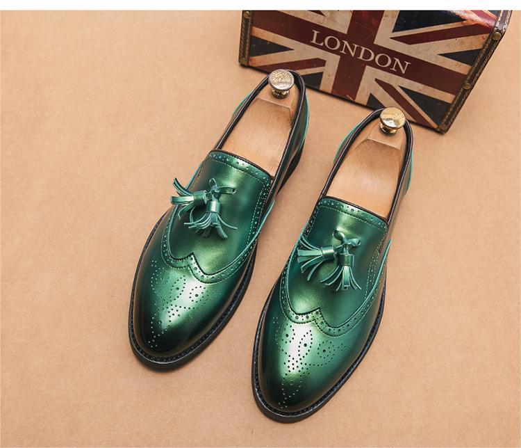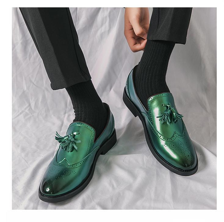 ★NEW★メンズ TG21585-24.5cm/39 ビジネスシューズ グリーン(3色) クラシカル おしゃれ レトロ UK風 タッセル ローファー ウィングチップ