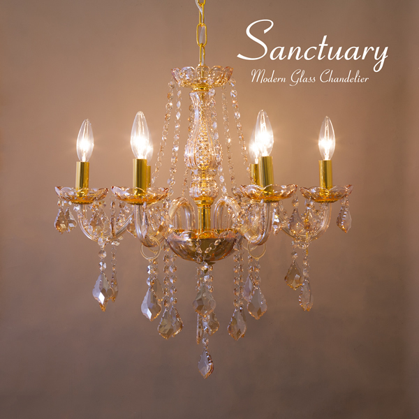 モダンガラスシャンデリア6灯 サンクチュアリ【Gold】
