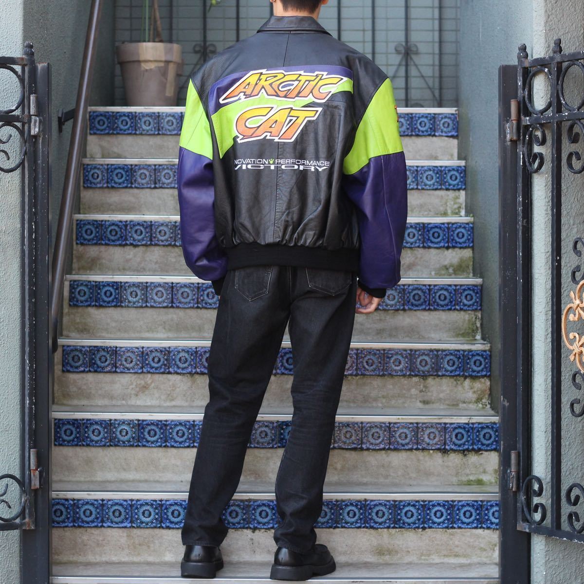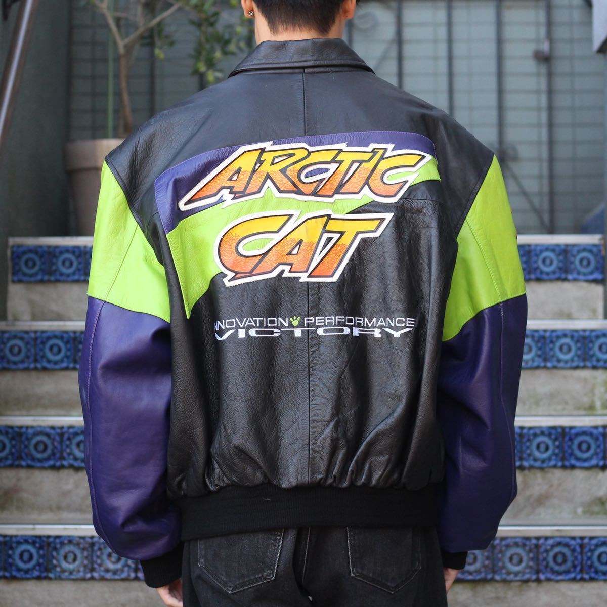 *SPECIAL ITEM* USA VINTAGE ARCTIC CAT LOGO DESIGN ALL LEATHER ZIP JACKET/アメリカ古着レザージャケットロゴデザインオールレザージップジャケット
