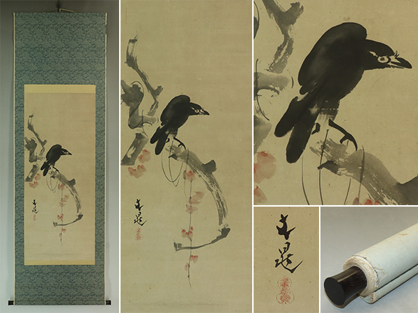 | №2209158【真作】谷文晁【枯木鴉図】◆紙本◆合箱◆掛軸 | |