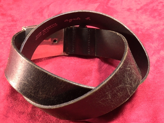 アニエスベー 黒 革 85 プレートバックル ベルト agnes b. 仏製