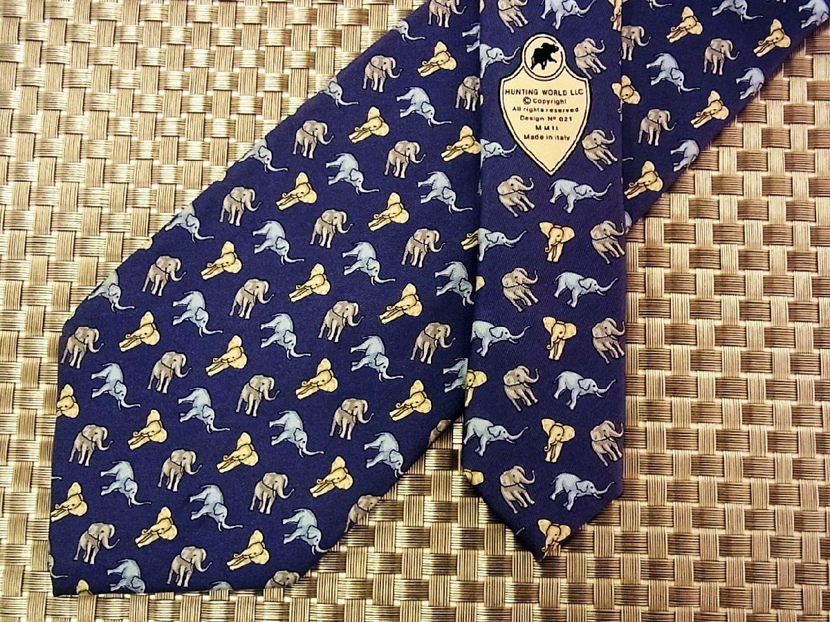 ♪29501C♪良品【象 ゾウ 動物 柄】ハンティングワールド【Hunting World】ネクタイ